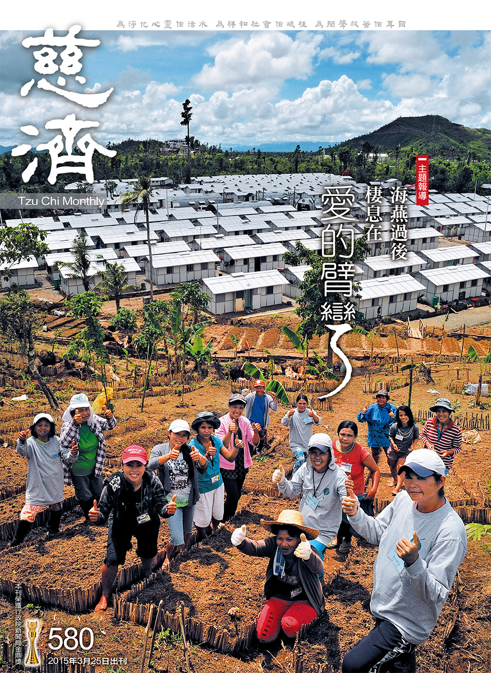 在菲律賓政府提供的土地上,慈濟為海燕風災災區帕洛鎮援建的組合屋社區,二月中旬全數完工。在藍天白雲、綠樹椰林環抱的大愛村中,村民參加慈濟以工代賑,在大愛農夫園種菜種花,安身也安生。(攝影╱黃筱哲)
