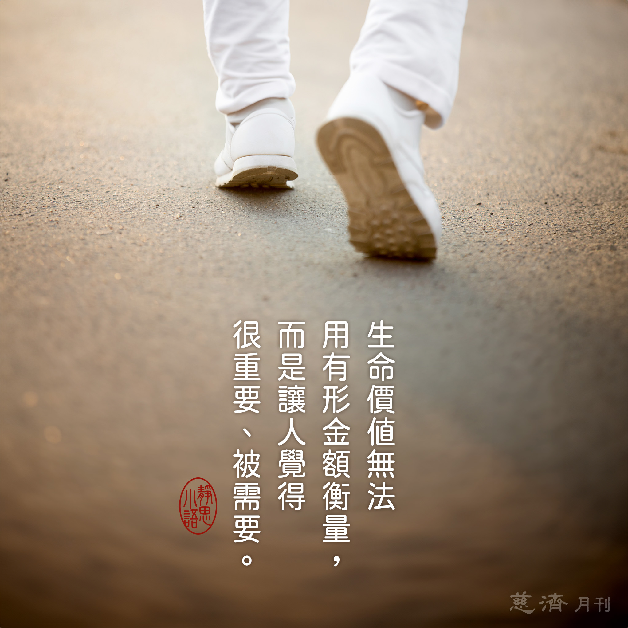 【靜思小語】生命價值無法用有形金額衡量,而是讓人覺得很重要、被需要。