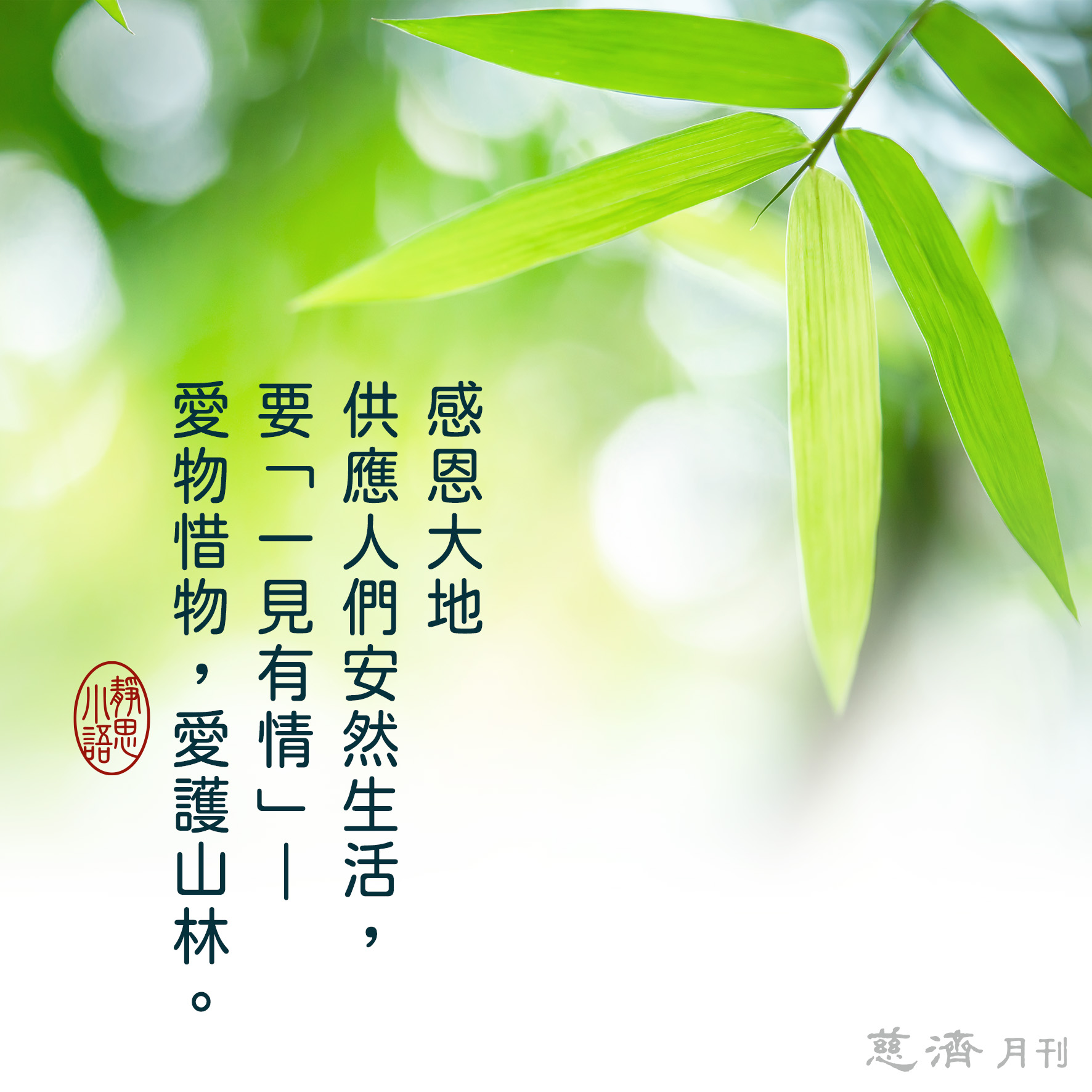 【靜思小語】感恩大地供應人們安然生活,要「一見有情」―愛物惜物,愛護山林。