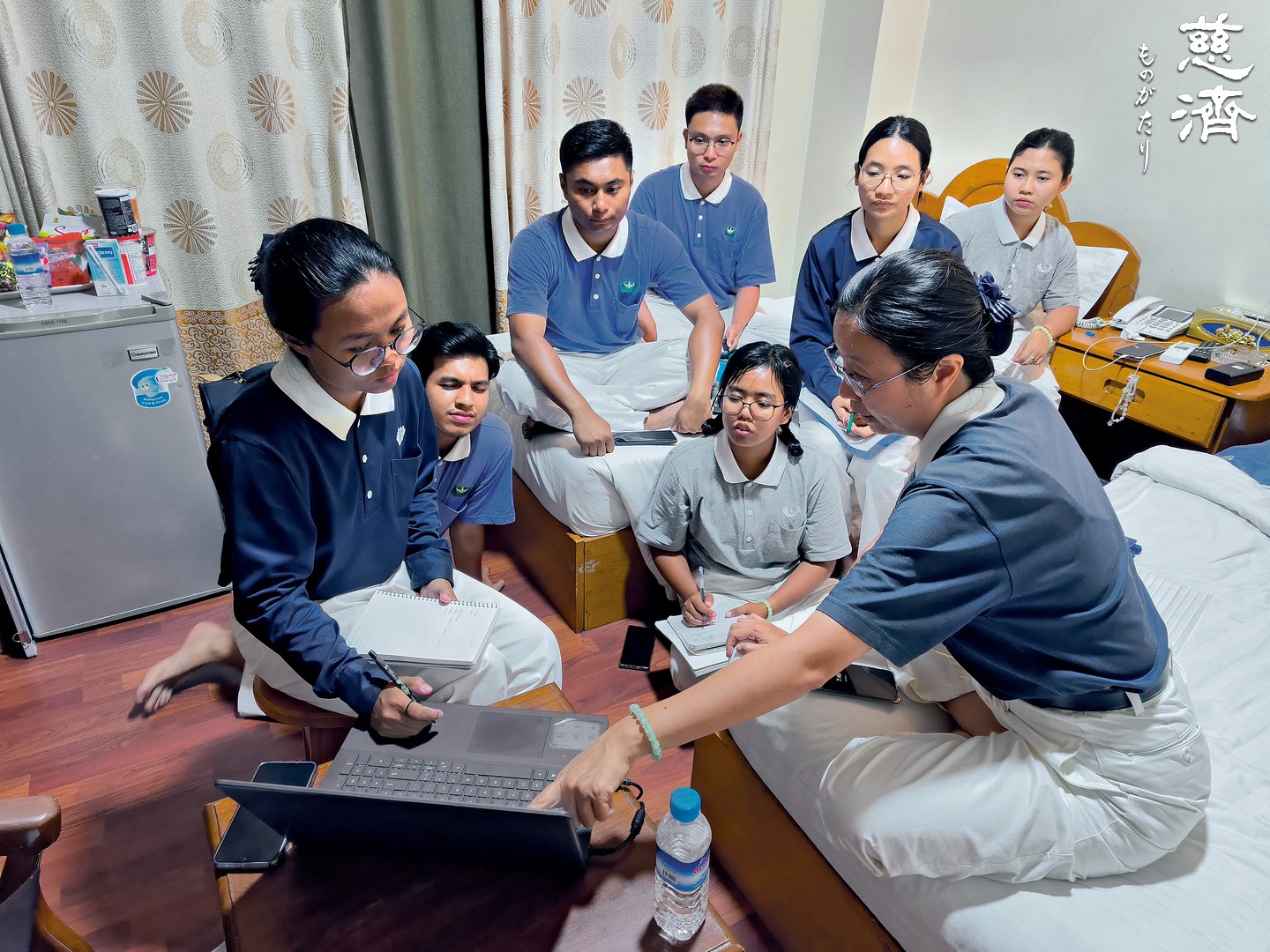 その後チームは、花蓮本部の管理職及び職員たち、そして、同行したマンダレーの孔教学校の三名の校長たちと話し合った。孔教学校は現地で最大の中国語学校だが、校舎の多くが倒壊した。「四つのキャンパスは全て被害を受け、特に北キャンパスの被害が深刻です」と丁澤民(ディン・ズァミン)校長が説明した。六月初めの新学期に先立って、慈済は、四つのキャンパスに通う八千人の生徒が安心して登校できるよう、孔教学校に四十一のプレハブ教室を建てることを計画した。チームは孔教学校だけでなく、他の被災した学校も訪問した。