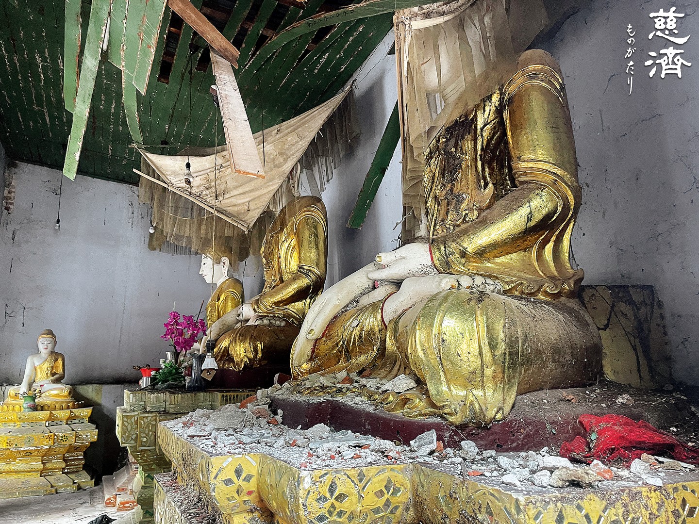 イェー・ター・ファン僧院では、仏龕(ぶつがん)が瓦礫でいっぱいになり、仏像も建物の損傷で被害を受けていた。