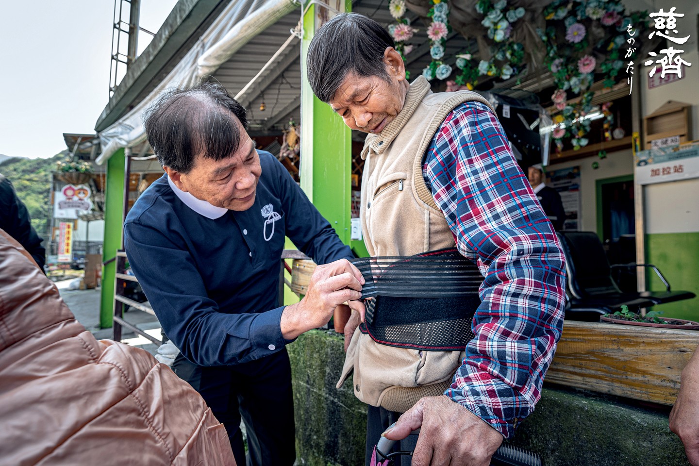 八十歳を過ぎた林(リン)さんは、障がいのある娘の車椅子を押しながらやって来た。その車椅子を見て、ブレーキが緩んでいることに気づいた慈済ボランティアの許文虎(シュウ・ウェンフー)さんは、すぐに適当な工具を探して修理した。他のボランティアは林さんに腰痛ベルトの着用法を教え、彼の昔語りに耳を傾けた。