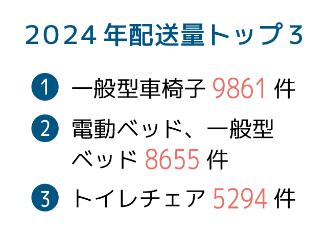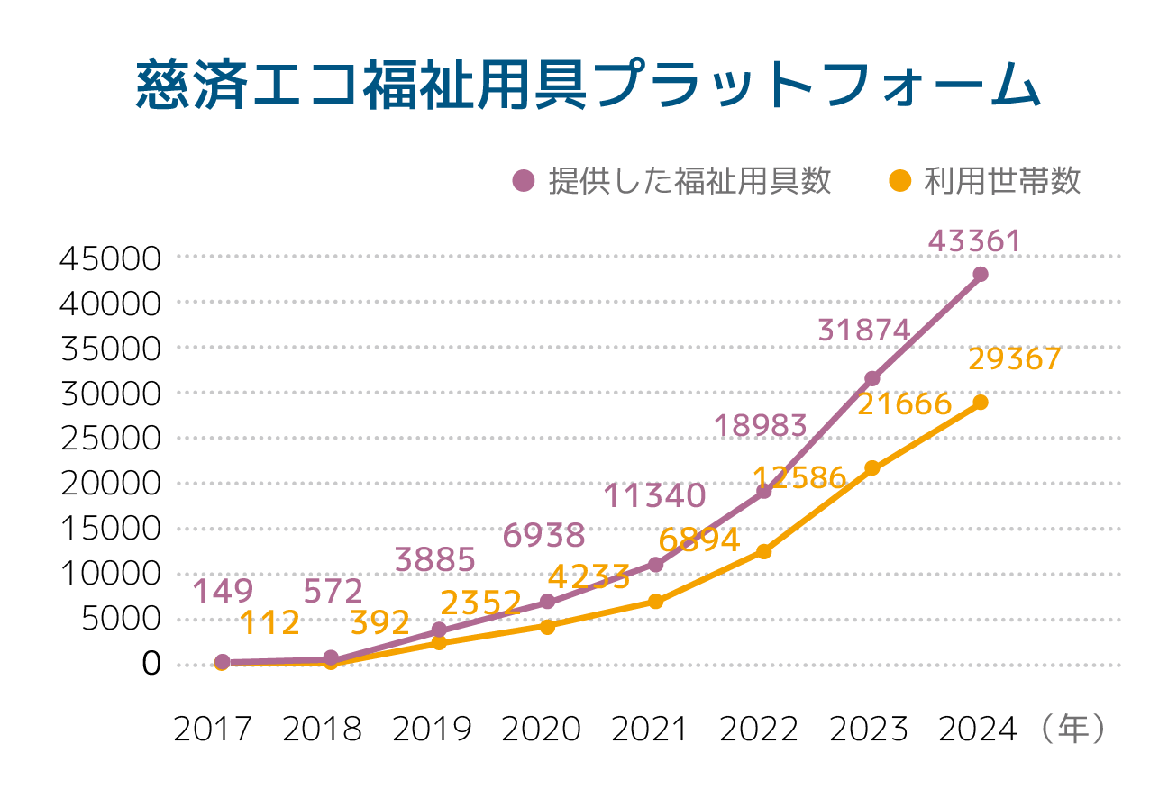 二○一七年三月の設立以来、八年間で延べ134,363点の福祉用具を89,057世帯に提供。