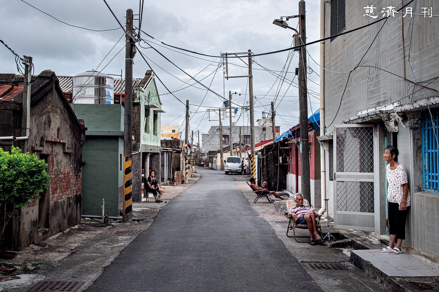 藍色條紋的帆布猶如OK繃,暫時覆蓋住丹娜絲風災過境後留下的傷痕。臺南七股區沿海一帶的西寮里,諸多老宅受損,建材碎片已被收攏到白色尼龍袋中,暫置在空地上。
