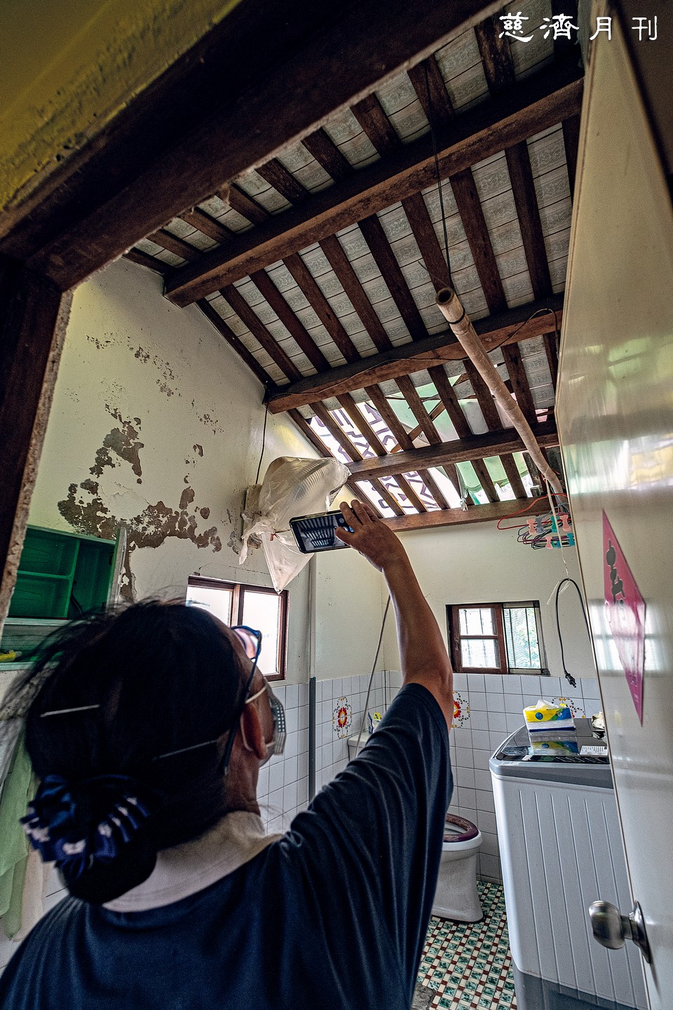 帶領工班的林啟明師兄表示,衡量晴雨不定,他們的作業模式是先將帆布部分掀起,拆除舊瓦片;若遇到降雨,就趕緊將帆布覆回,暫停施工。這樣做雖然比較麻煩,但是能夠避免豪雨灌入屋內損壞家具。