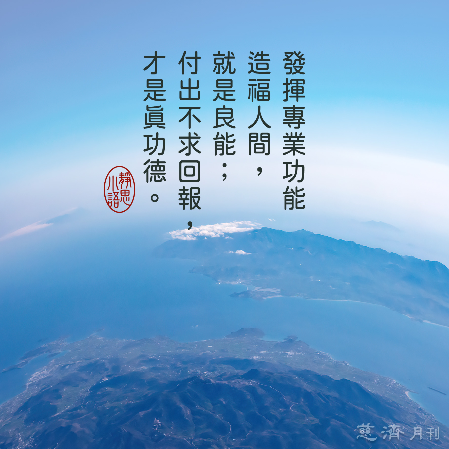 【靜思小語】發揮專業功能造福人間,就是良能;付出不求回報,才是真功德。