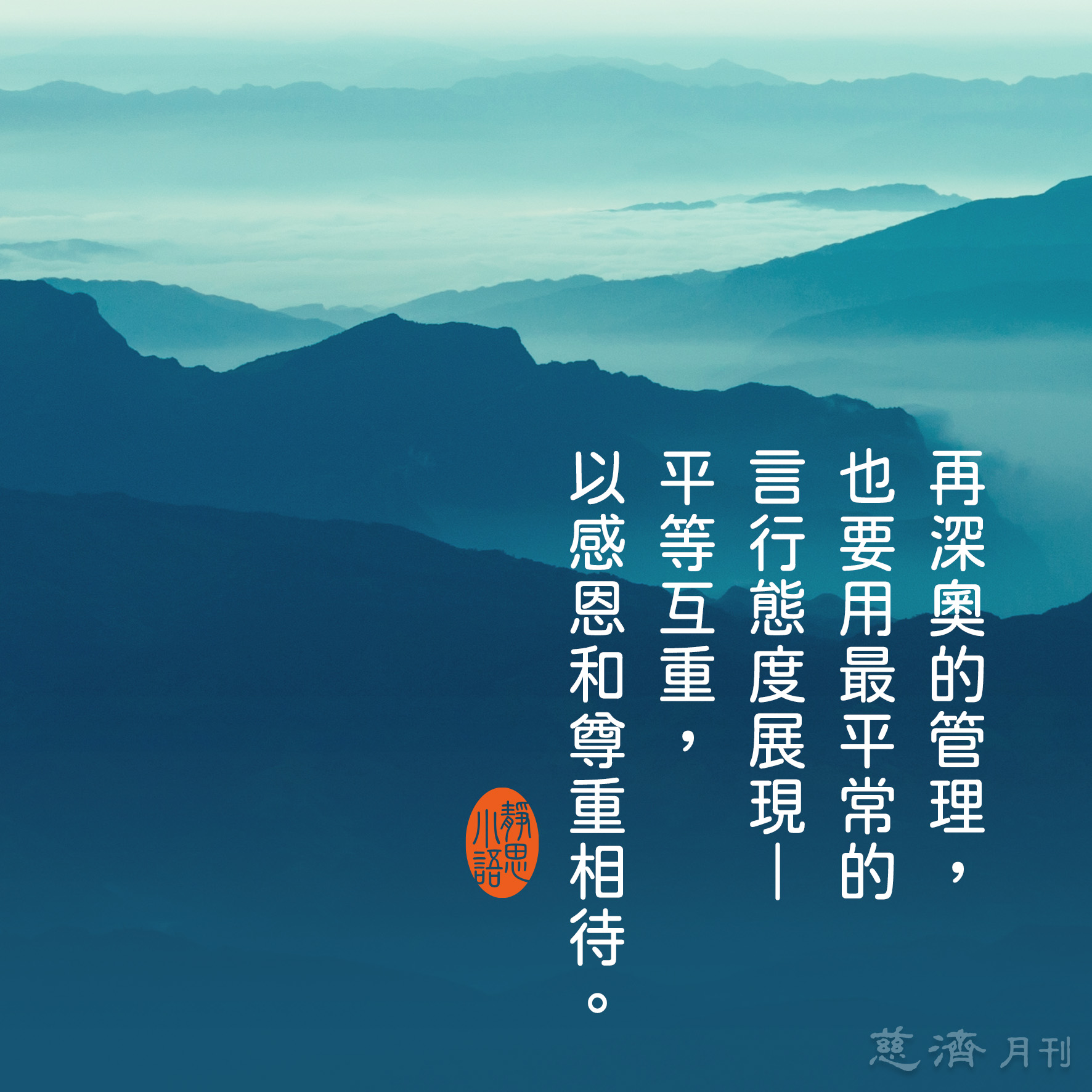 【靜思小語】再深奧的管理,也要用最平常的言行態度展現―平等互重,以感恩和尊重相待。