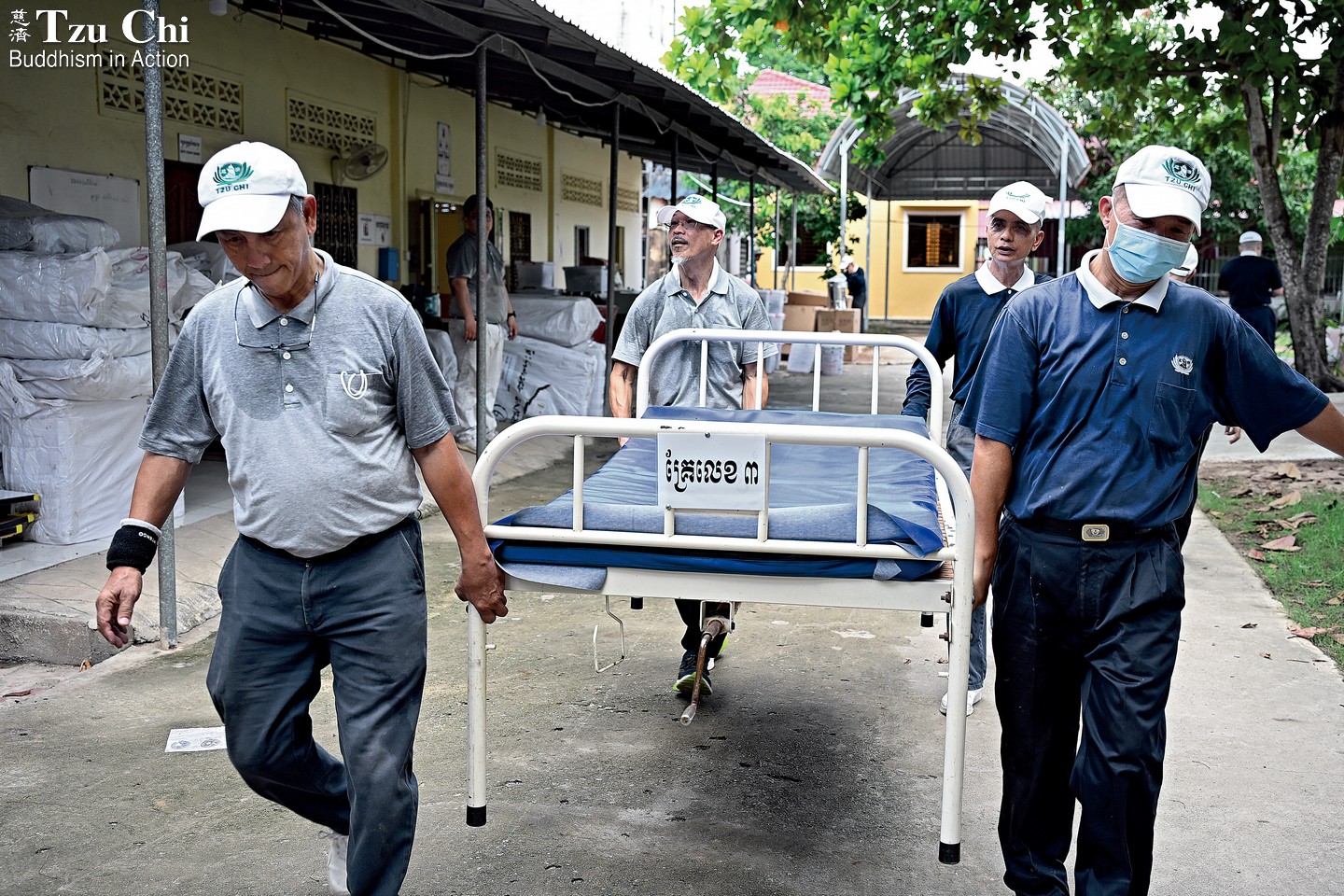 Meanwhile, Tzu Chi’s advance team from Singapore arrived with 31 boxes of equipment and essential items. They set up the site at Prey Kabbas Referral Hospital in Takeo Province, organizing areas for consultation, treatment, and pharmacy services (photos 3 and 4).