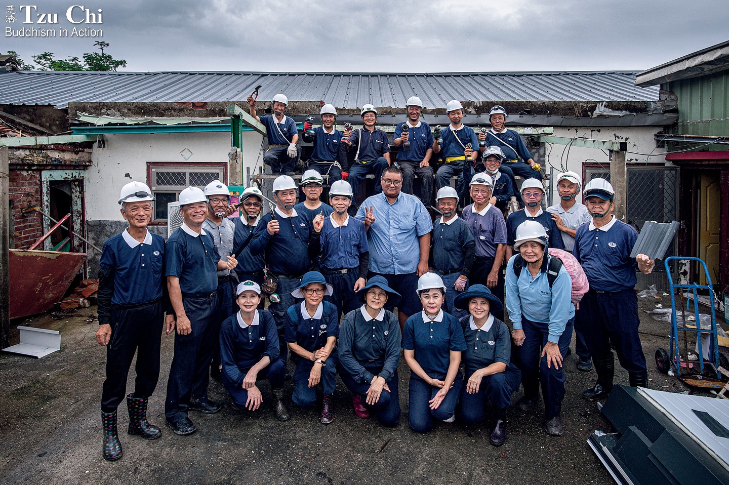 Among the Tzu Chi volunteers who joined the foundation’s repair effort after the typhoon was a unique group composed entirely of those with engineering experience: the Abode Maintenance Crew. Usually responsible for maintaining the Jing Si Abode, the Buddhist convent founded by Master Cheng Yen, they had traveled to southern Taiwan to lend their skills to disaster relief.