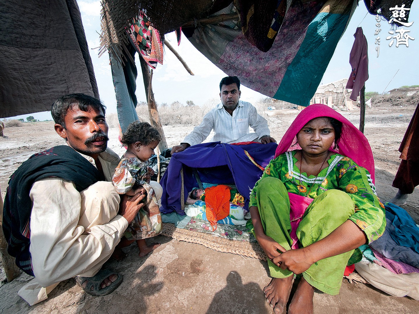 二〇一〇年十月、女の赤ちゃん、シャナは洪水後に誕生した。その時パキスタンは、主要河川であるインダス川が氾濫して百九十万棟の住宅が損壊し、二千万人以上が被災した状態だったので、慈済ボランティアがシンド州でその家族に出会った時、全財産を失った彼らは、木の棒で一枚の布を支えた中に寝泊まりしていた。生まれたばかりの赤ちゃんは、ぬかるんだ地べたにむしろとシーツを敷いた上に寝かせるしかなかった。