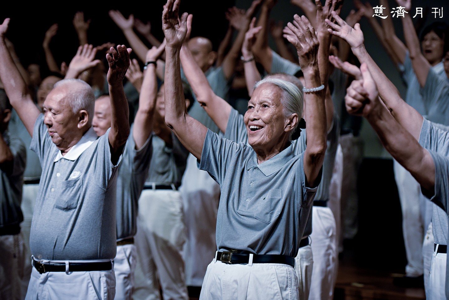 站在第一排中央表演手語、八十八歲的王峇世,雖然動作有些緩慢,但每個手勢都標準到位。儘管已是高齡,他依然清晰回憶當年隨環保志工到臺灣,初次見到上人的情景,以及他的承諾:「要生生世世跟隨上人。」
