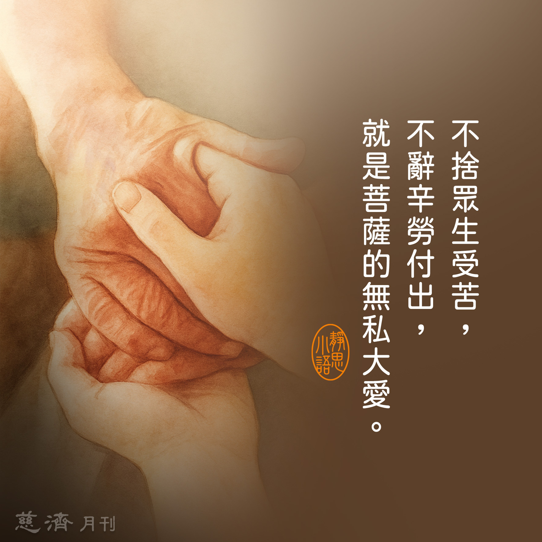 【靜思小語】不捨眾生受苦,不辭辛勞付出,就是菩薩的無私大愛。