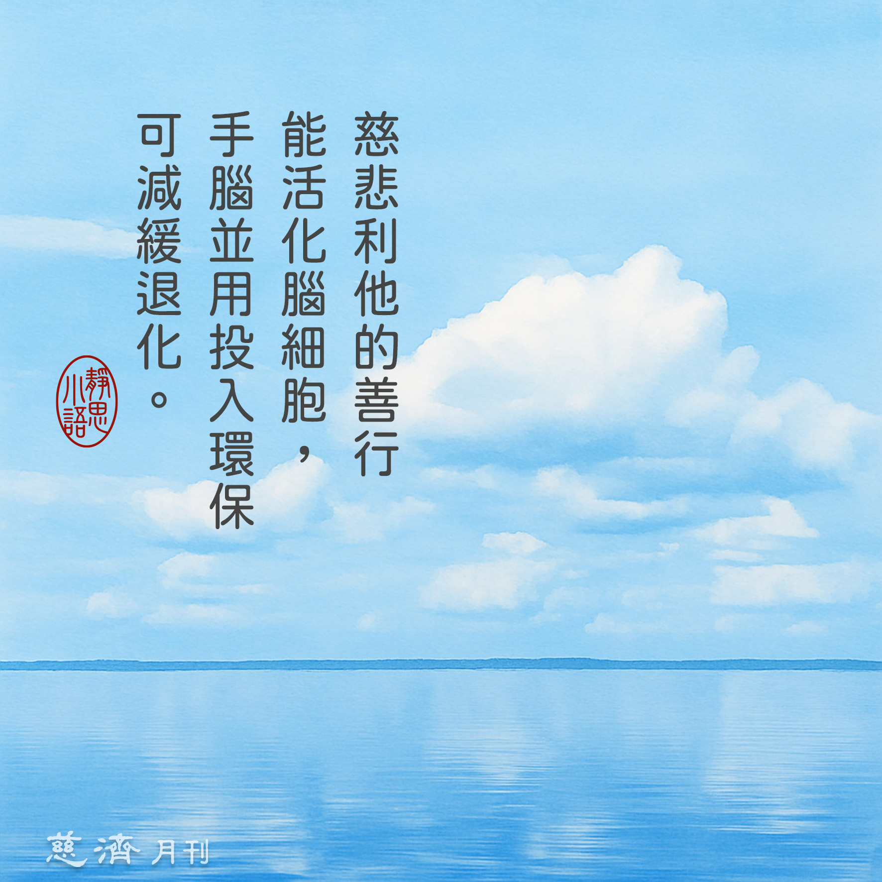 【靜思小語】慈悲利他的善行能活化腦細胞,手腦並用投入環保可減緩退化。