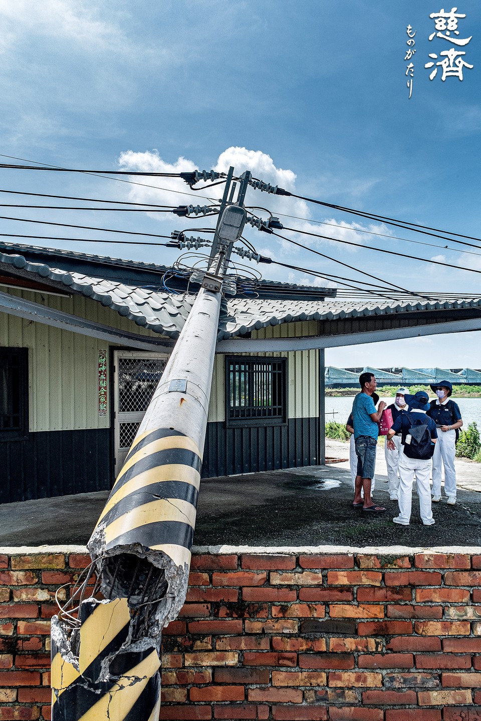 家庭訪問の過程で、忘れがたい光景がいくつかあった。その中の一つが布袋鎮の虎尾寮である。海岸沿いに位置する虎尾寮では、一列に並んだ戸建て住宅が、遠くから見ると廃墟のように見えた。ある家は二階正面に大きな穴が開き、三階のトタン屋根も吹き飛ばされていた。二階と三階の内部が丸見えで、災害後の数日間の雨水が溜まっていた。
