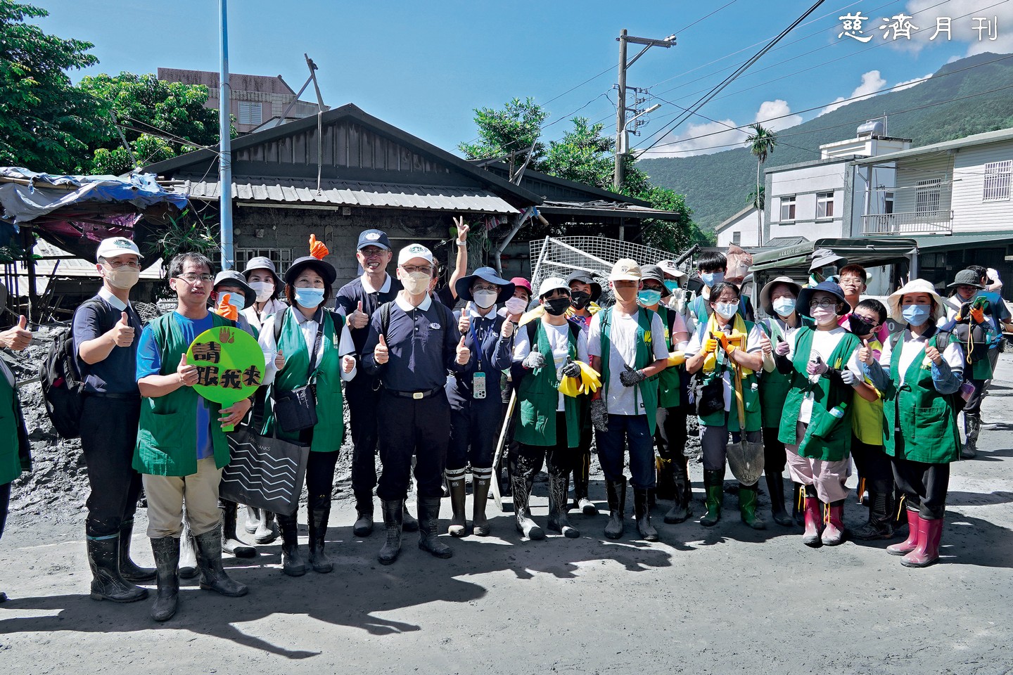 泥土黏稠沉重,工具也尚未完全到位,九月二十五日緊急動員近三百位花、東慈濟志工投入,一天結算下來僅清出十五戶……面對光復鄉估計兩千多戶受災,我的心情一度非常低落。但隨著媒體報導,教師節三天連續假期,看到來自四面八方的志工,尤其是平均年紀約三十歲的青年志工,自發性大量湧入協助,十分自律、熱心又配合,我感到非常驚訝與振奮。