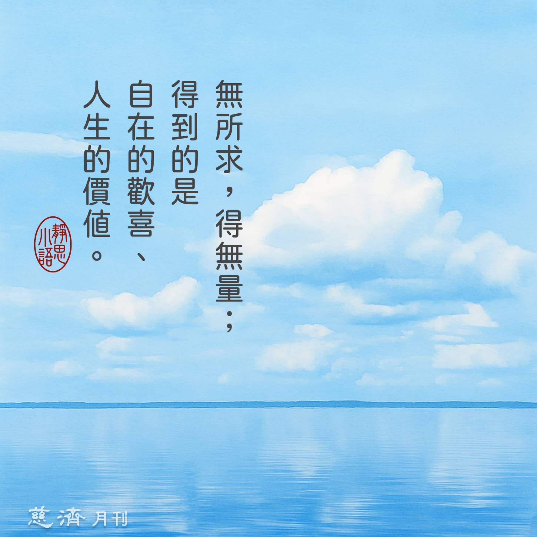 【靜思小語】無所求,得無量;得到的是自在的歡喜、人生的價值。