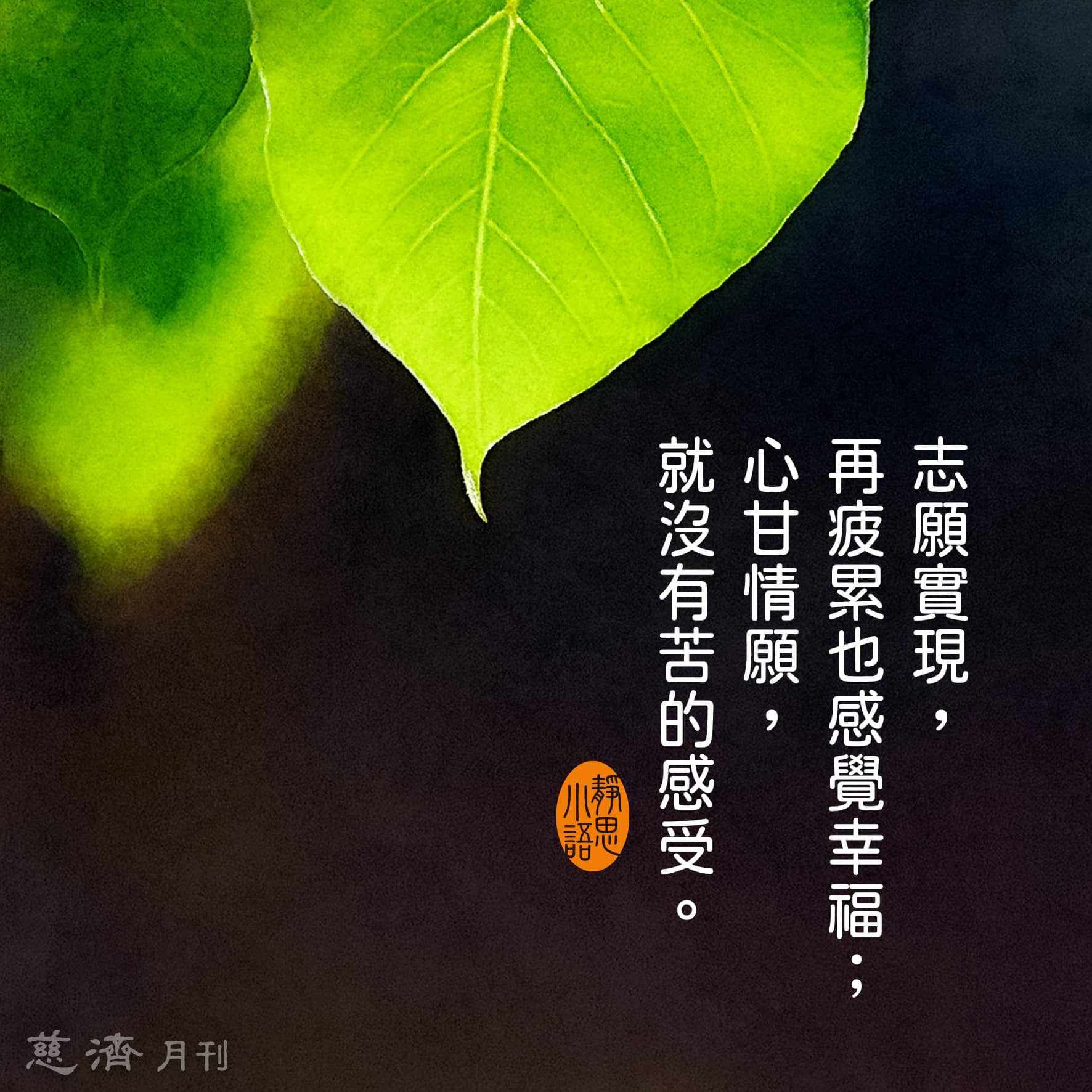 【靜思小語】志願實現,再疲累也感覺幸福;心甘情願,就沒有苦的感受。