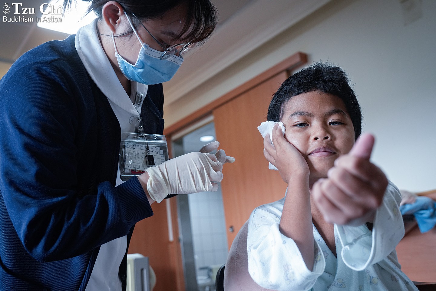Ten-year-old Sok Reaksa from Cambodia spent six months at Dalin Tzu Chi Hospital in Taiwan, where she bravely underwent multiple surgeries to remove a tumor and reconstruct her right ear—fulfilling her grandmother’s wish to see her with two ears.