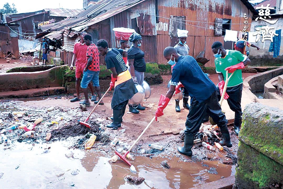 慈済は、カトリック教の「カリタス基金会フリータウン事務所」、「ヒーリー国際救援基金会」と二〇一五年から協力関係を結び、食糧と食器、寝具などを配付してきた。二〇一六年には、ランイ基金会も協力に加わって共に善行を行った。慈済は毎年、台湾農業委員会に人道支援米を申請しているが、静思精舎の師父たちが五穀パウダーを提供してくれたので、これら全てを彼ら現地の協力パートナーを通じて配付している。