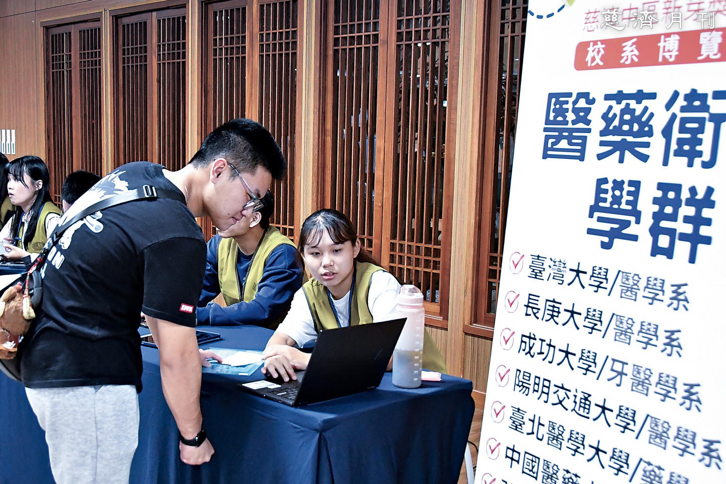 十一月一日臺中靜思堂場次並舉辦「中區新芽育成校系博覽會」,新芽前輩穿上志工背心,和高中生受獎者分享過來人經驗,分析選系資訊。「新芽育成計畫」二○二○年起執行,補助有專長潛能的青少年學習費、補習費、生活費或住宿費,並累積社會服務的歷練。