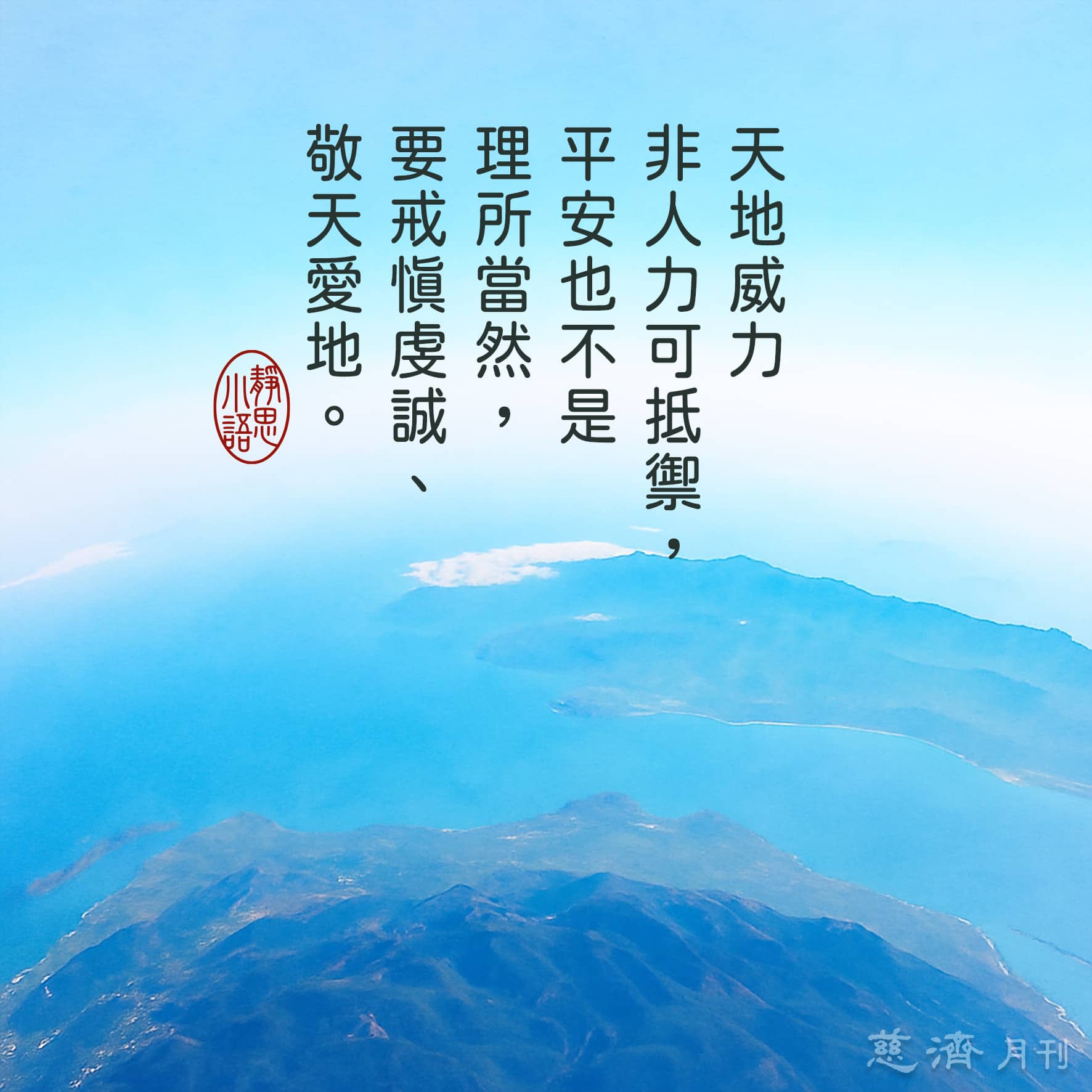 【靜思小語】天地威力非人力可抵禦,平安也不是理所當然,要戒慎虔誠、敬天愛地。