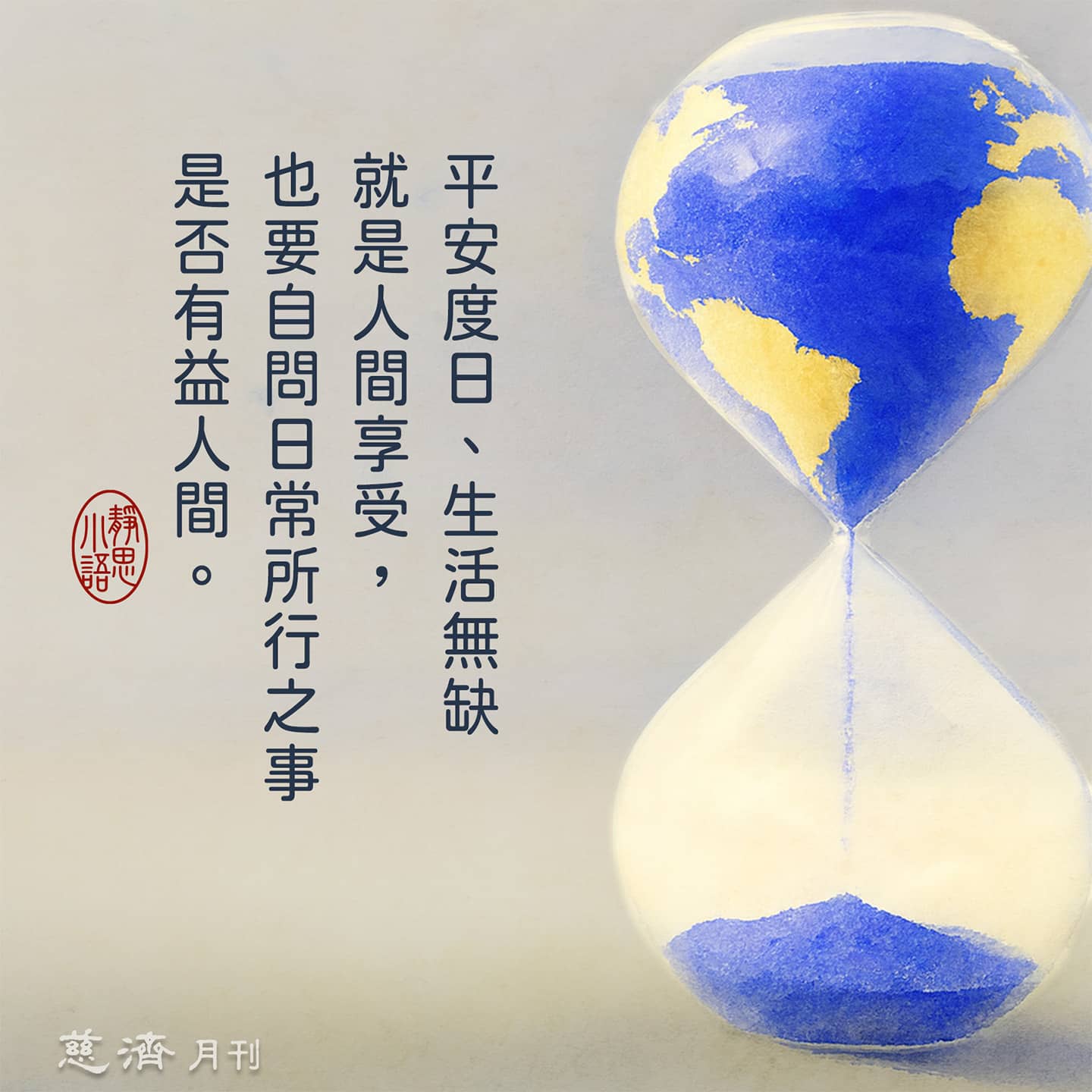【靜思小語】平安度日、生活無缺就是人間享受,也要自問日常所行之事是否有益人間。