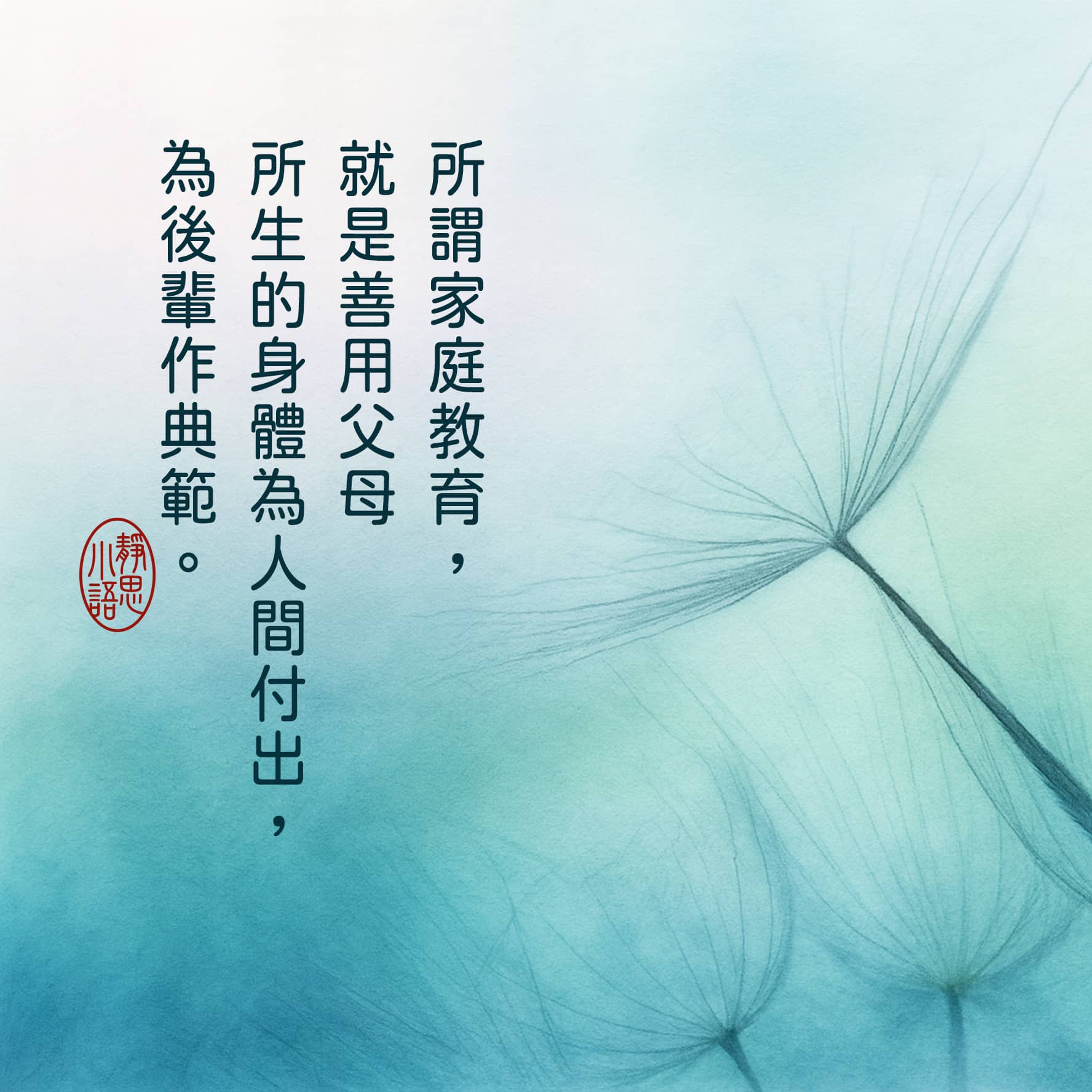 【靜思小語】所謂家庭教育,就是善用父母所生的身體為人間付出,為後輩作典範。