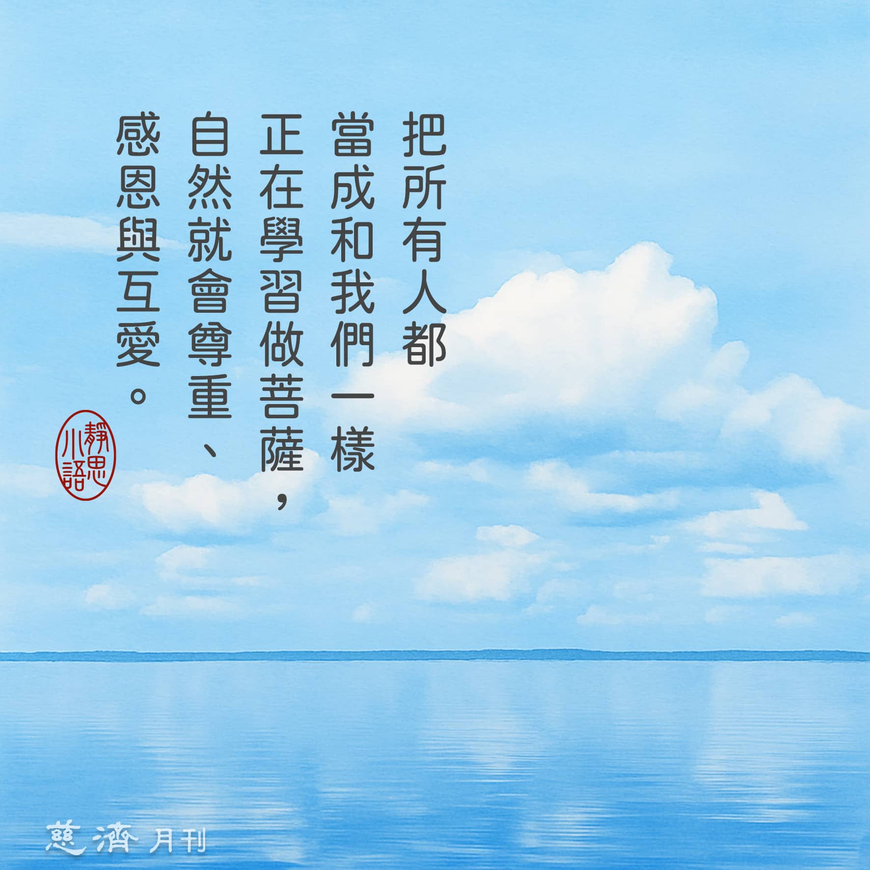 【靜思小語】把所有人都當成和我們一樣正在學習做菩薩,自然就會尊重、感恩與互愛。