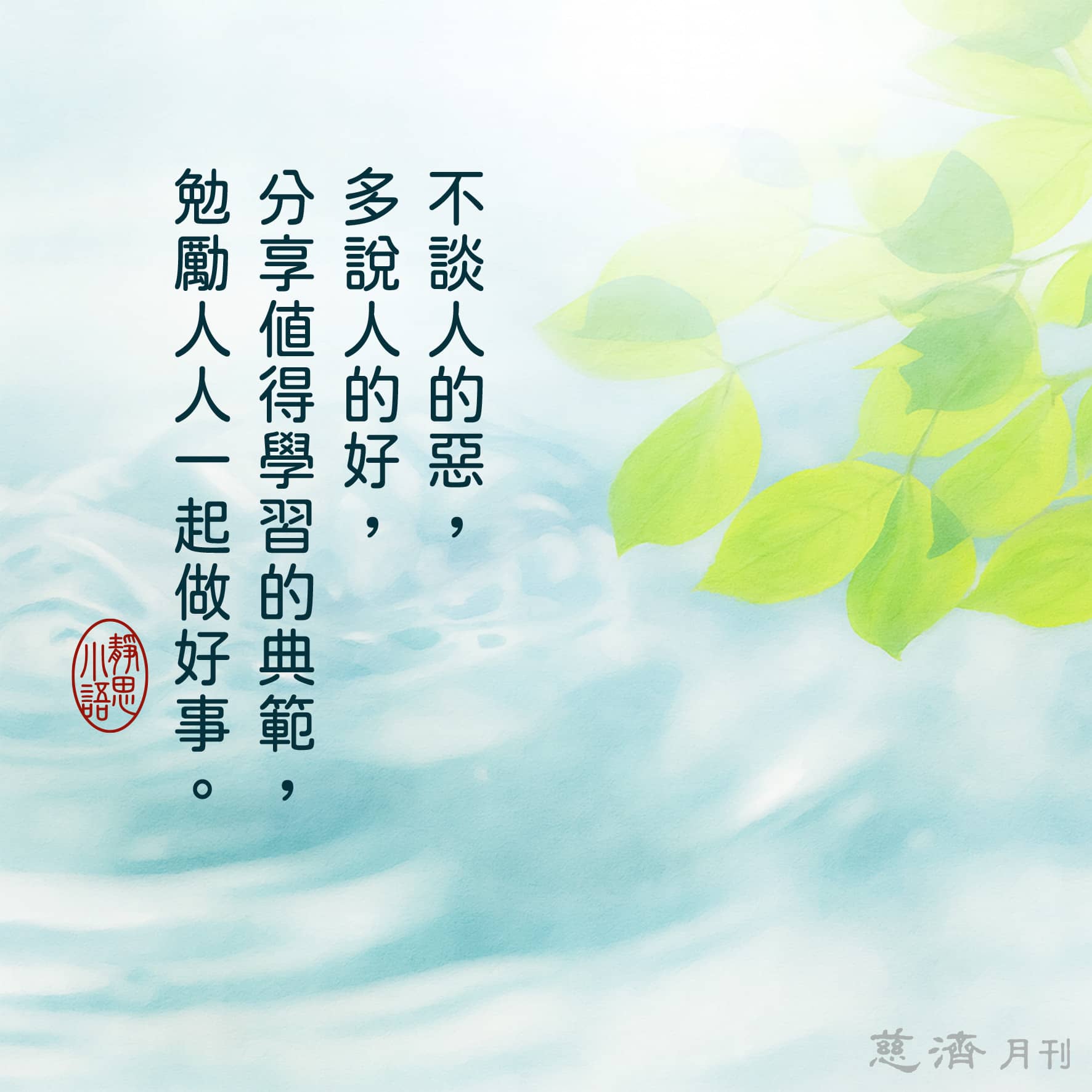 【靜思小語】不談人的惡,多說人的好,分享值得學習的典範,勉勵人人一起做好事。