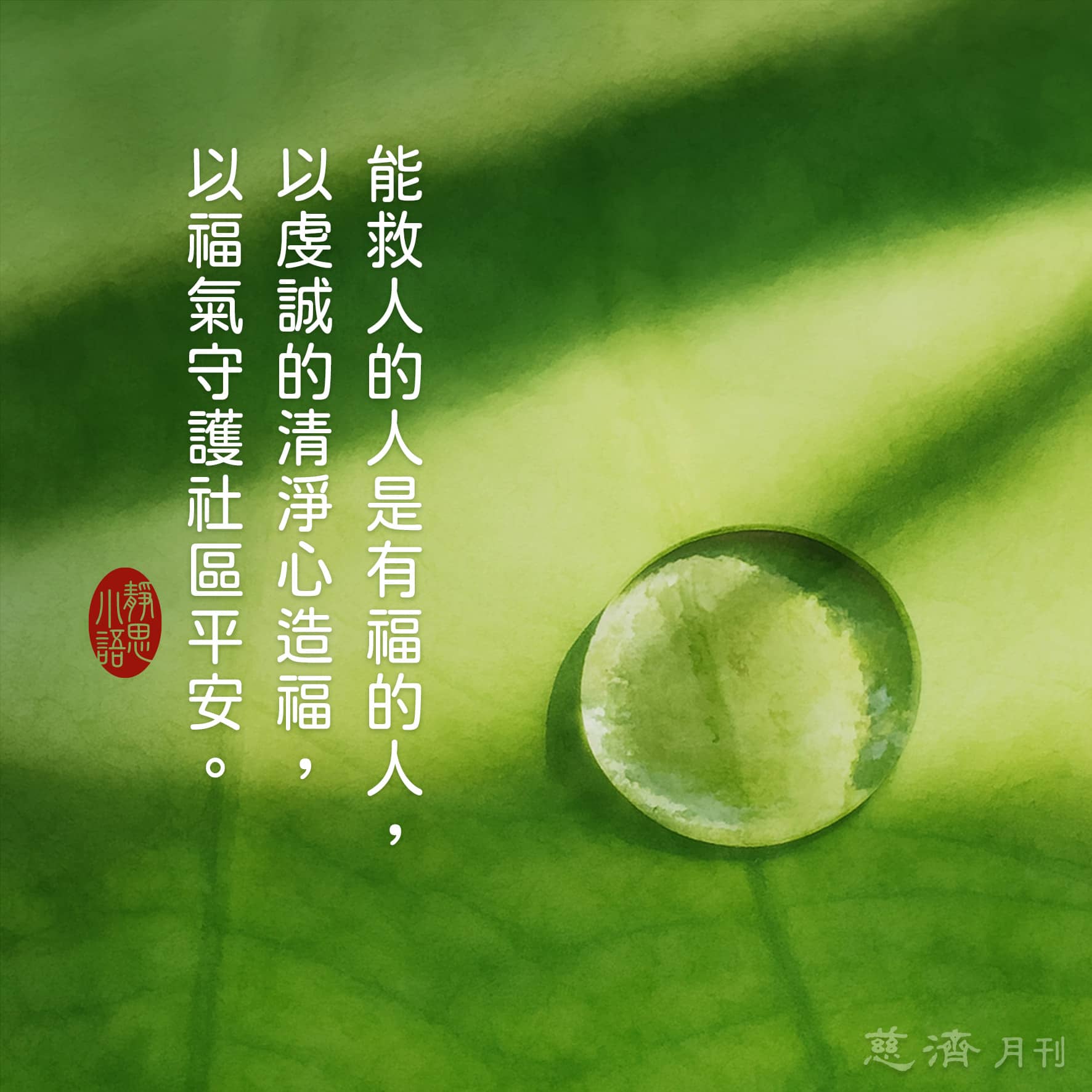 【靜思小語】能救人的人是有福的人,以虔誠的清淨心造福,以福氣守護社區平安。