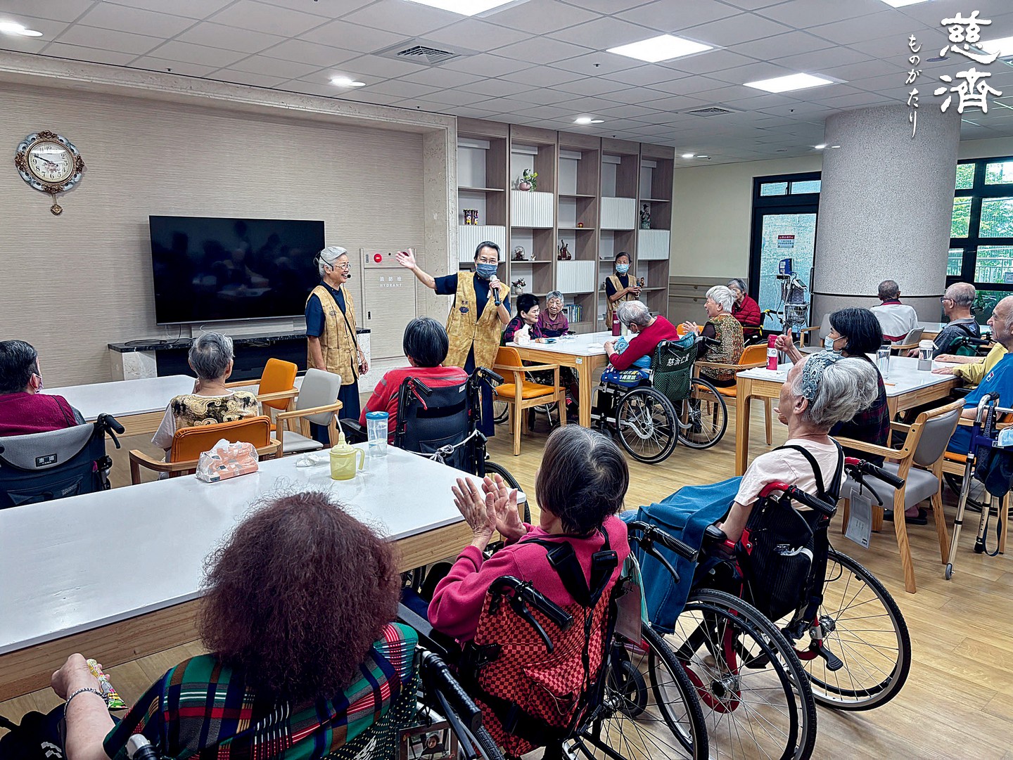 高齢者ケアには専門的な技能だけでなく、何よりも「心」が必要である。陳さんだけでなく、多くの地元の慈済ボランティアも介護スタッフや訪問介護員の研修に参加し、修了後は静思堂で定期的に活動する人もいれば、外勤で在宅サービスを提供している人もいる。ベテランボランティアの王衍基(ワン・イェンジー)さんは、訪問介護員の訪問ケアに同行することが多く、時には利用者の情緒が不安定な場合に対応することもある。他の法縁者と同様、長期ケアに関しては全力で協力している。「高齢の菩薩たちは、デイケアセンターに来ても、初めは元気がないことが多かったのですが、主任やスタッフの励ましにより、今ではとても生き生きとしています。私たちはそれを見て感動し、支えていこうと思いました」。
