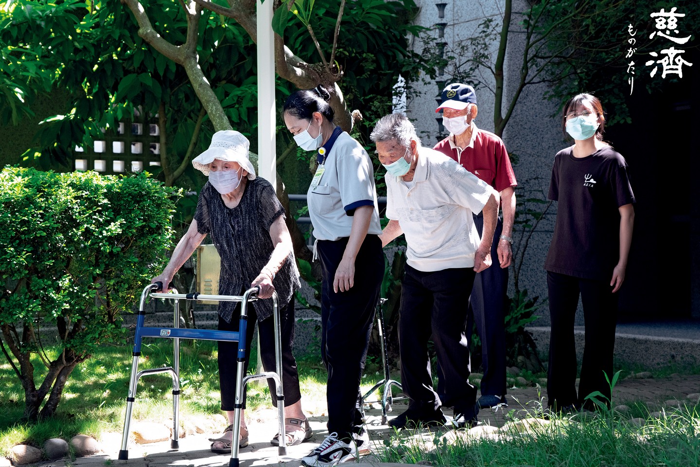 「天気が良ければ、高齢者に日光浴しながら歩いてもらうこともあります。彼らも屋外で座っているのが好きなのです」。慈済清水総合長期介護施設の呂怡静(リュウ・イーチン)主任が言った。高齢者に付き添う介護スタッフは常に注意力を保たなければならない。なぜなら、デイケアセンターの利用者は身体機能がある程度衰えていたり、身体機能を喪失しているため、杖や歩行器、車椅子などの補助具に頼る必要があるからだ。また、食事の時には呑み込みの問題があるかどうかに注意を払う必要があるため、細心の注意と配慮が求められるスタッフが信頼されるのである。