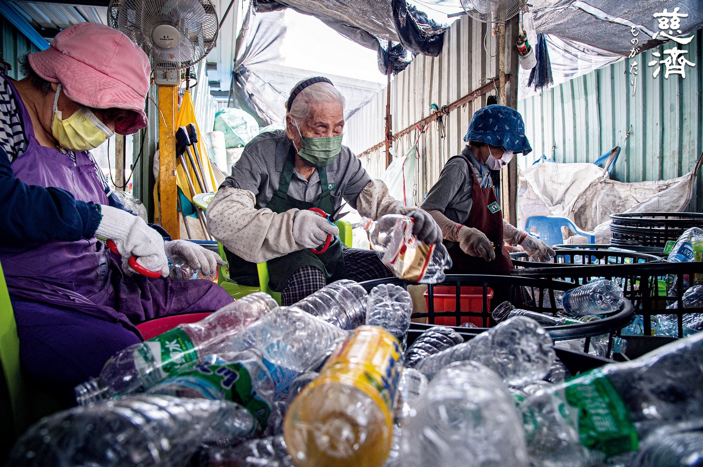 高齢者たちは、回収された資源の分別に集中し、一つ一つの動作で手と目の協調性を鍛えていた。さらに、人と頻繁に交流することも、認知機能の低下を遅らせることができる。このため、リサイクルステーションは「最高のデイケアセンター」と評されている。(撮影・黃筱哲)