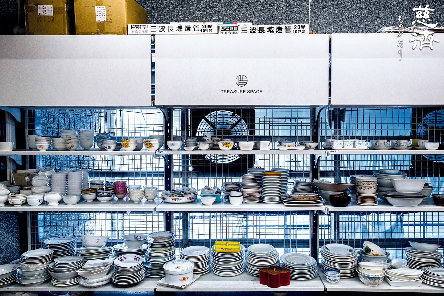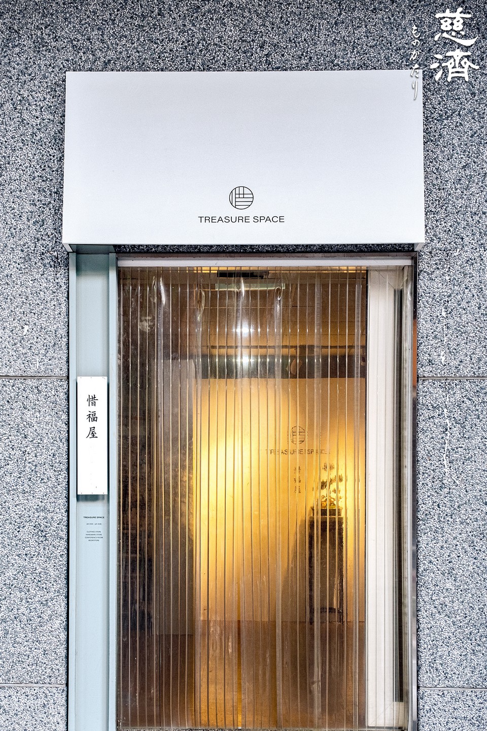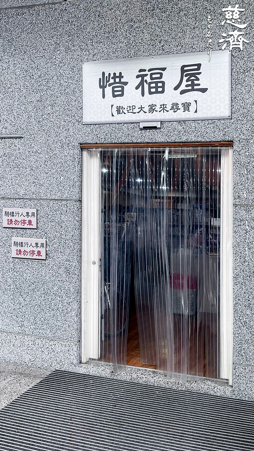 慈済台北中山八徳共修所に行くと、左側に変わった作りの扉があり、その横にあるミントグリーン色の木の板に白い「惜福屋㊟」と書かれた看板がかかっている。そして扉の上には、円の中に交差する数本の黒い線で「惜」の字をデザインしたロゴの下に、英語で「TREASURE SPACE」と書かれており、扉をくぐると「宝島」に来たことを意味している。
