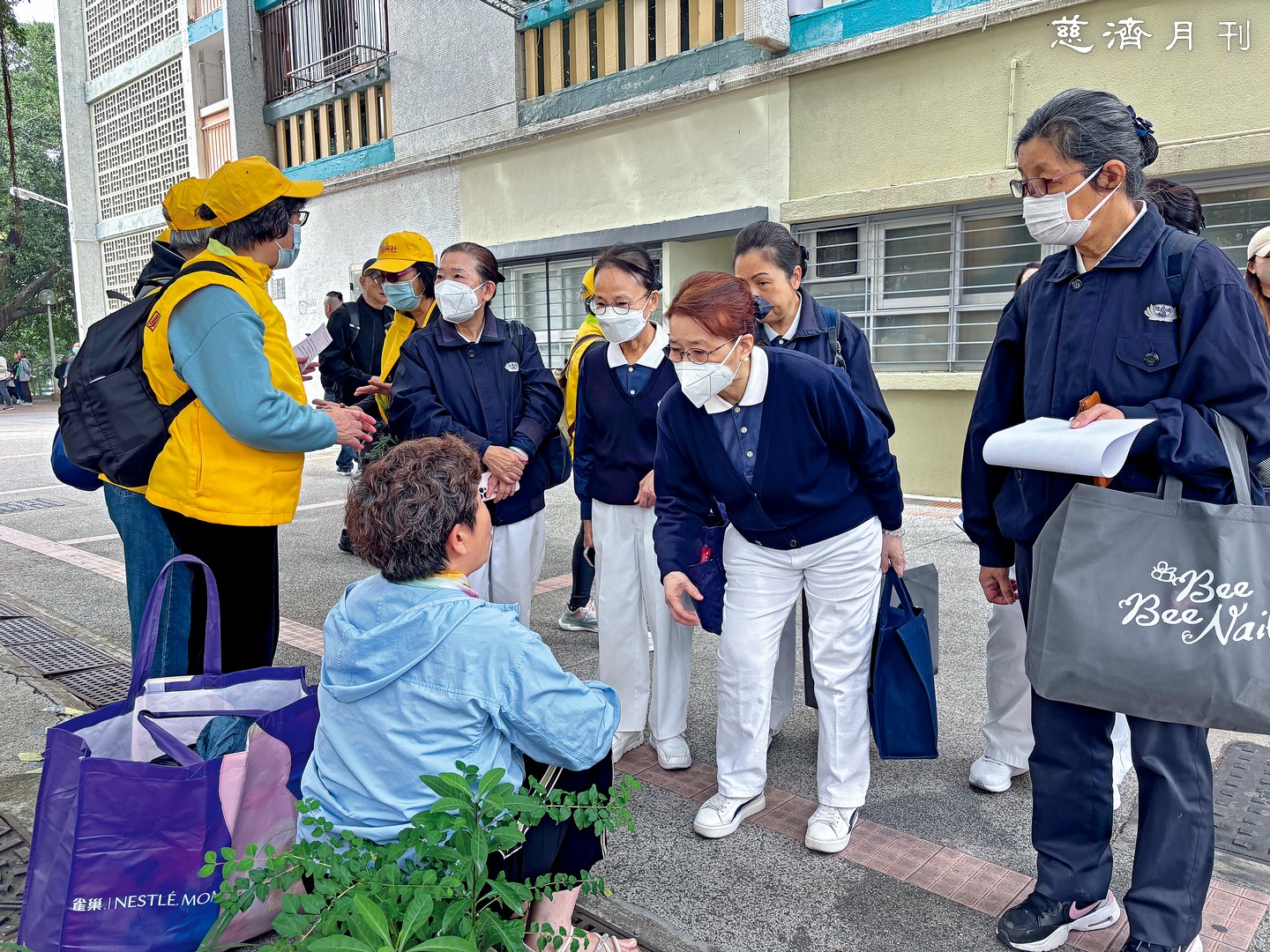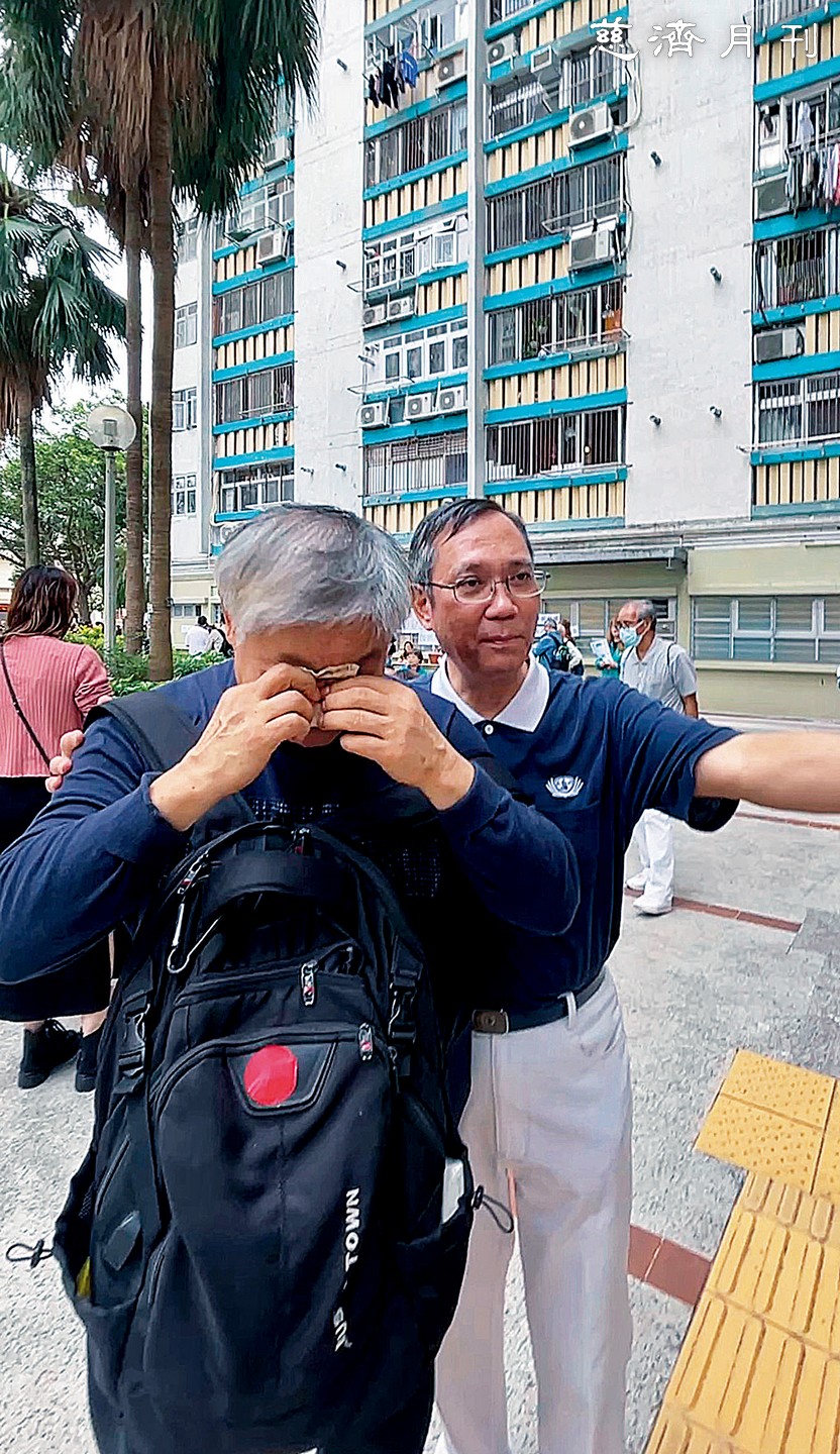 慈濟人在火災當日傍晚六點多已趕赴現場關懷,我翌日來到大樓外圍,看到水柱持續噴射降溫,部分屋宇仍在燃燒。身為人文真善美志工,我的職責是克制情緒、專注記錄,但十一月二十九日在為受災戶登記資訊準備發放、持機拍攝時,我在鏡頭背後難以自已;見他們因失去家園而悲痛落淚,我亦忍不住跟著紅了眼眶,雖極想上前擁抱安慰,卻忍著先完成拍攝與採訪,因為我想讓大眾知曉:慈濟人一直在場陪伴受災者。