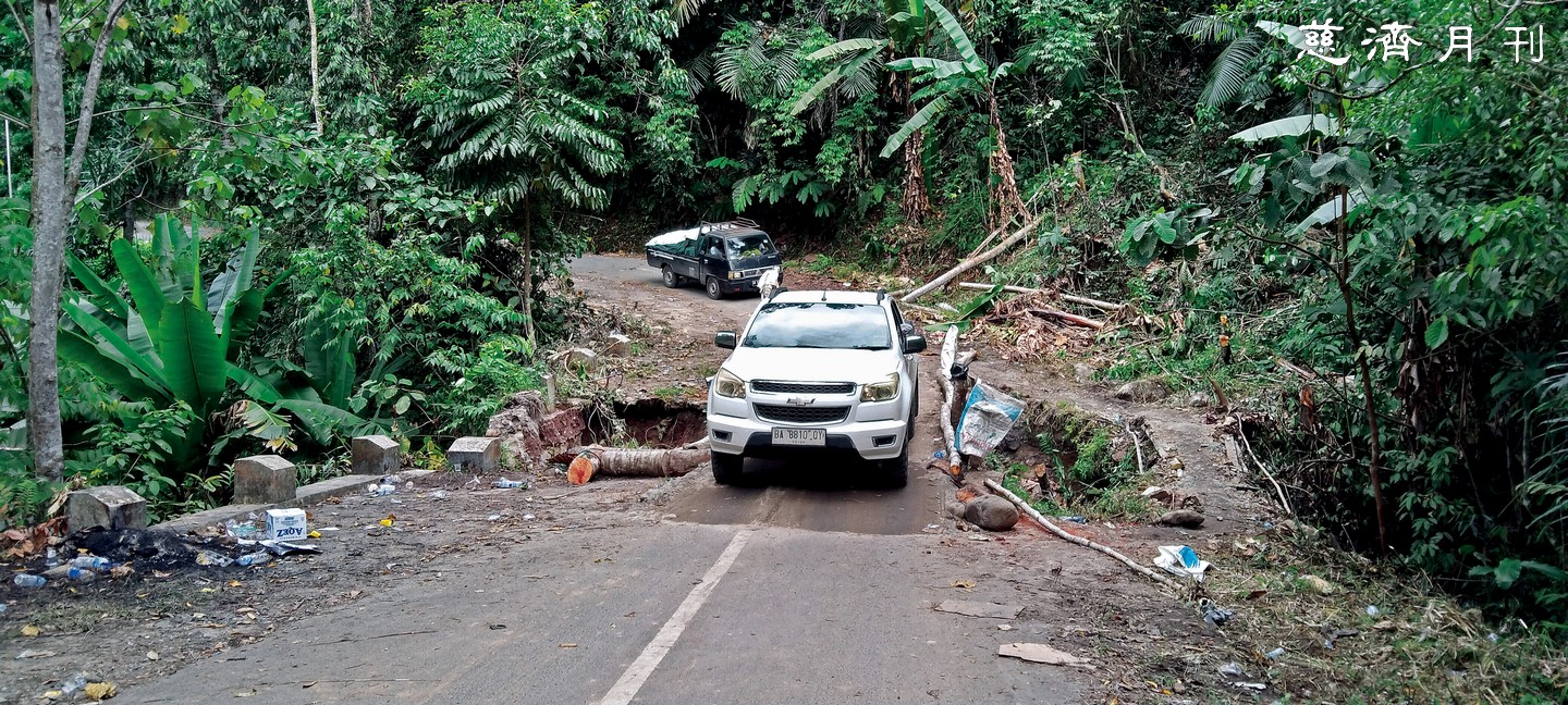 蘇門答臘島多山多河谷,然而森林砍伐破壞水土保持,暴雨泥流過後,棉蘭周邊地區滿目瘡痍(圖1);山區橋斷路毀,巴東慈濟志工設法前往偏僻的亞甘縣等災區補給物資(圖2)。(圖1/Leo Rianto攝影 圖2/Pipi Susanti攝影)