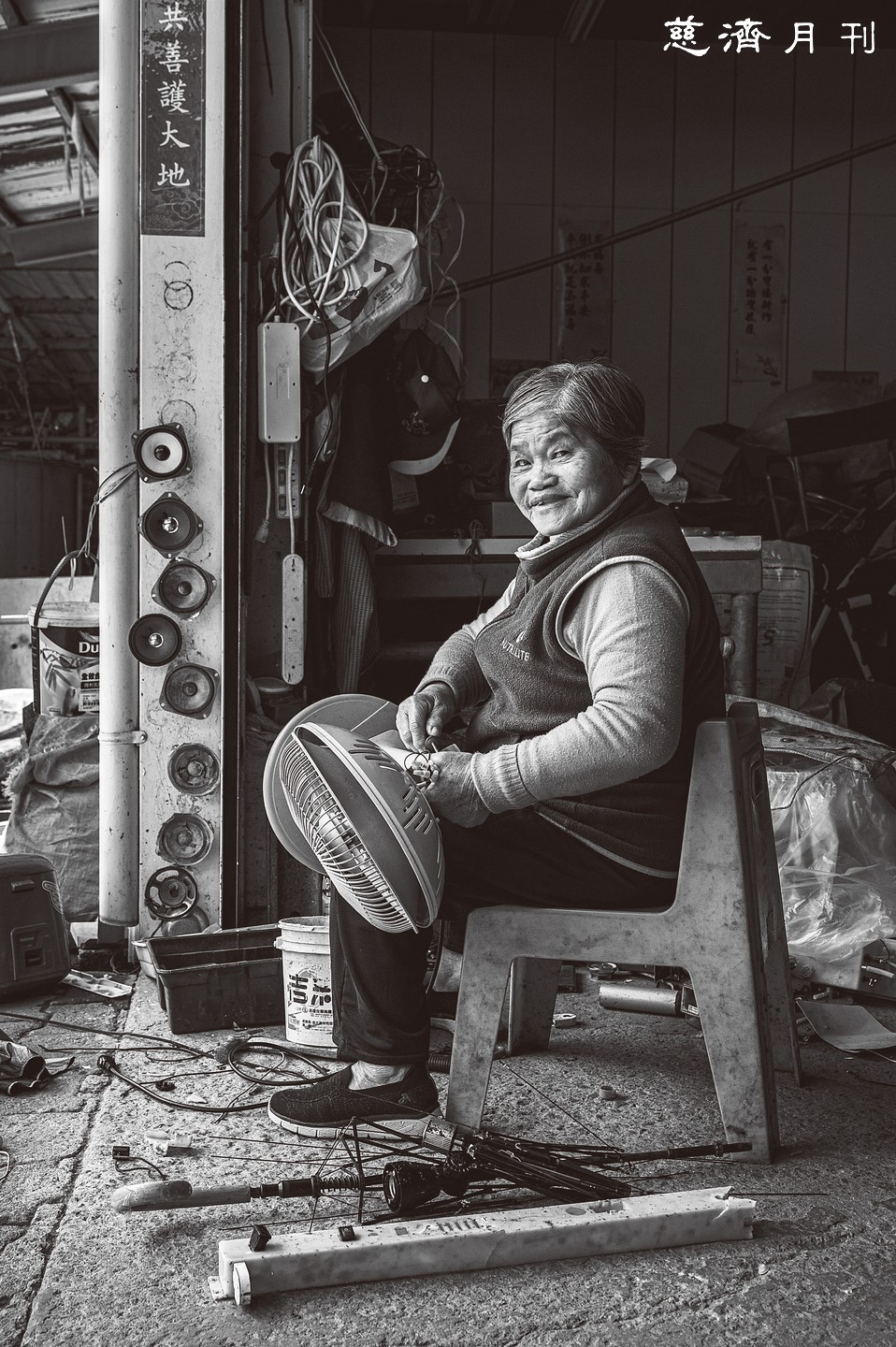戶外的環保志工進行得如火如荼,室內拆解回收電器的劉金桂老菩薩也毫不懈怠,她可是當天最早到環保站開門的志工。一聊之下才知,她每天清晨就牽著腳踏車前來,連週六、日也不缺席。年屆七十九歲的她,依然精神矍鑠、耳聰目明,雙手更是靈巧有力,僅憑簡單的工具,便能將電器細細分出各種材質,而且速度飛快!