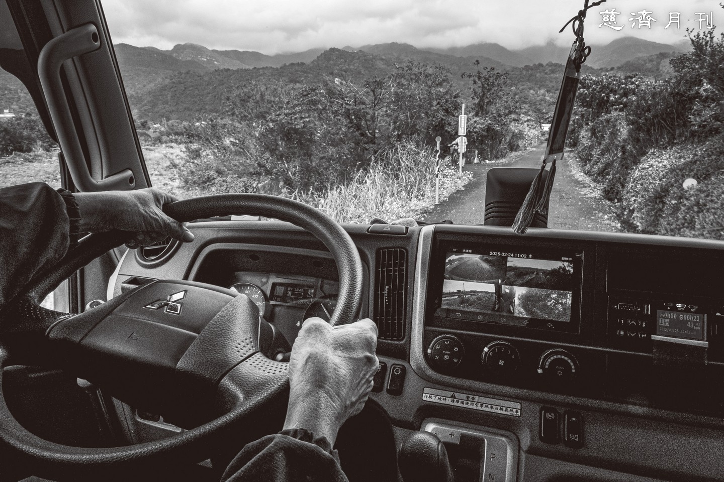 當天,我搭上一輛滿載回收物的環保車隨行前往回收場。掌握方向盤的是羅張美月,一路上她邊開車邊分享,才知鎮上大大小小的環保點多達八十多處,除了一般民眾住家之外,主要還有餐廳、飯店、民宿等。而有些環保點已有三十多年的深厚情誼,民眾總是將回收物留給慈濟,期盼善的循環得以延續。志工們也因此心存感恩,即使再忙也不曾懈怠,將每一分回收心意完整載回,讓環保不只是資源回收的過程,更是與鄉親之間的無聲連結。