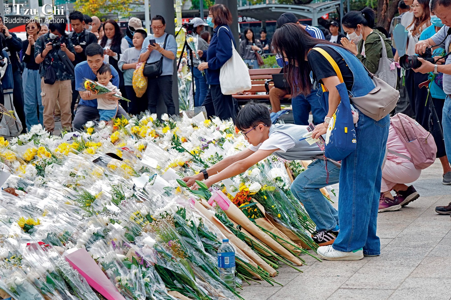 Volunteer Pipi Lau, whose two sons are firefighters, was on duty outside the fire scene on that first long, harrowing night. “The acrid smoke and towering flames were shocking,” she recalled. “I was deeply worried about my sons. But I couldn’t cry—I had to take responsibility and do what a Tzu Chi volunteer should do.”