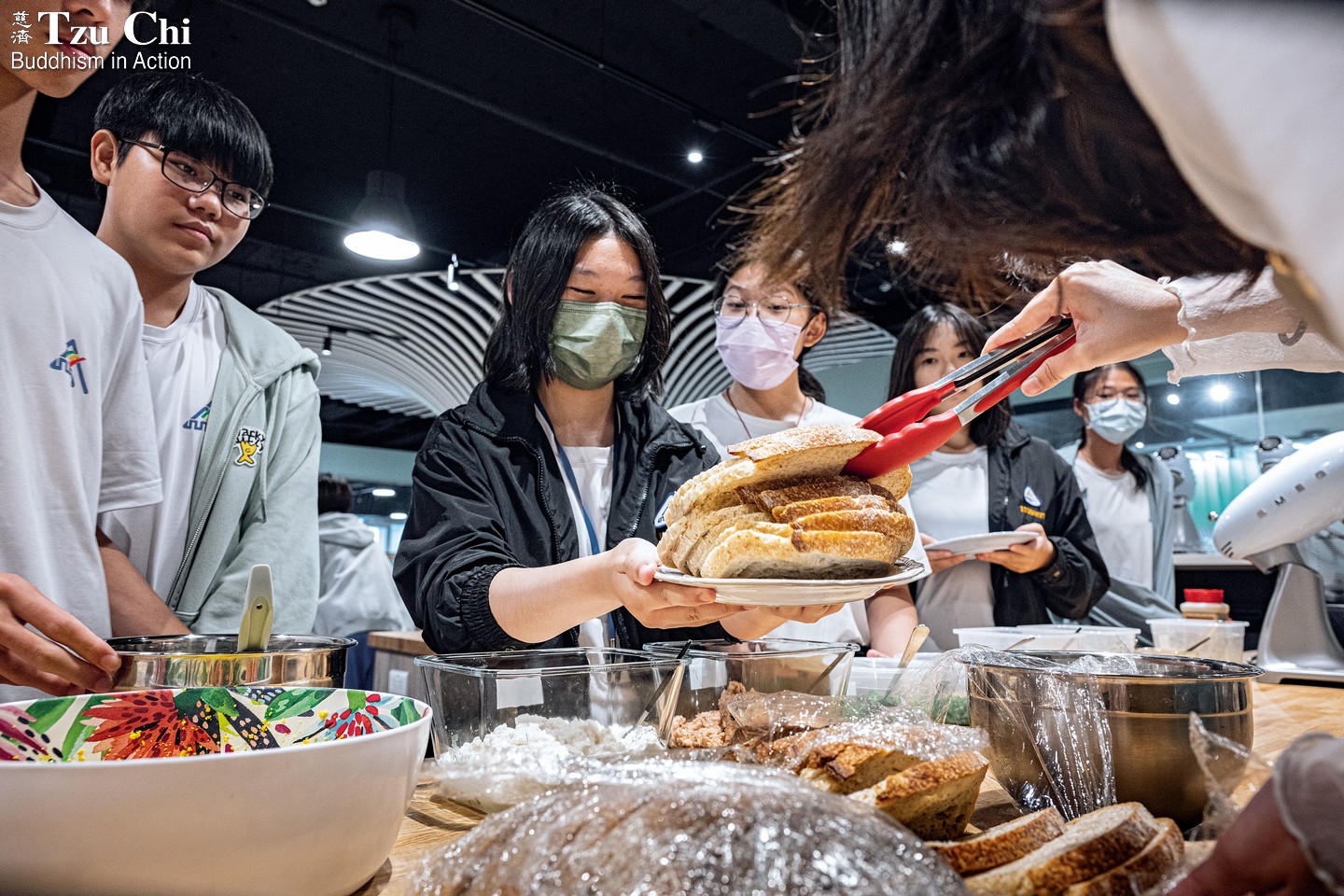 To further promote vegetarianism, Tzu Chi opened Plantarium in 2023, a multifunctional space located in the basement of a Tzu Chi office near Taipei’s Songshan Station. The venue combines a vegetarian buffet restaurant, a supermarket, a bakery, and a cooking classroom, allowing visitors to dine in, learn how to prepare vegetarian dishes, and purchase ingredients. It also houses a Jing Si Books & Café and an open area for talks and events.