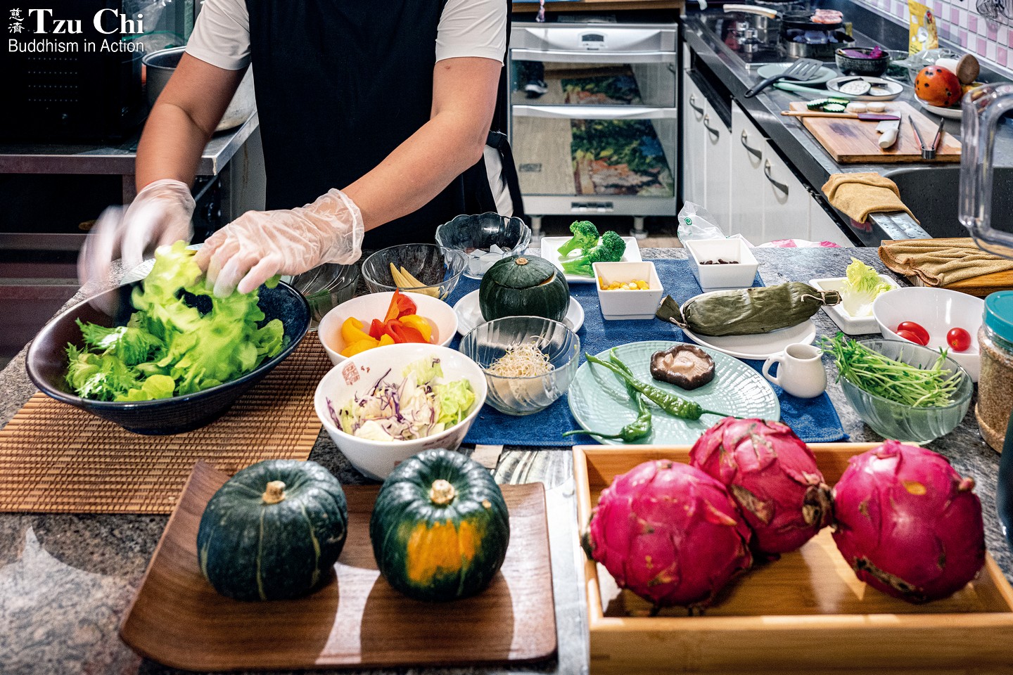 Since its founding in Taiwan in 1966, Tzu Chi has encouraged vegetarianism among its members in their daily lives. This commitment was later extended to its growing institutional network, with only plant-based food served in its branch offices, hospitals, and schools. Then, during the 2003 SARS outbreak, Dharma Master Cheng Yen made a call for the general public to adopt a vegetarian diet. “That was the first time vegetarianism was promoted to society at large,” recalled Isaac Chiu (邱國氣) from the CEO’s office of Tzu Chi’s charity mission.