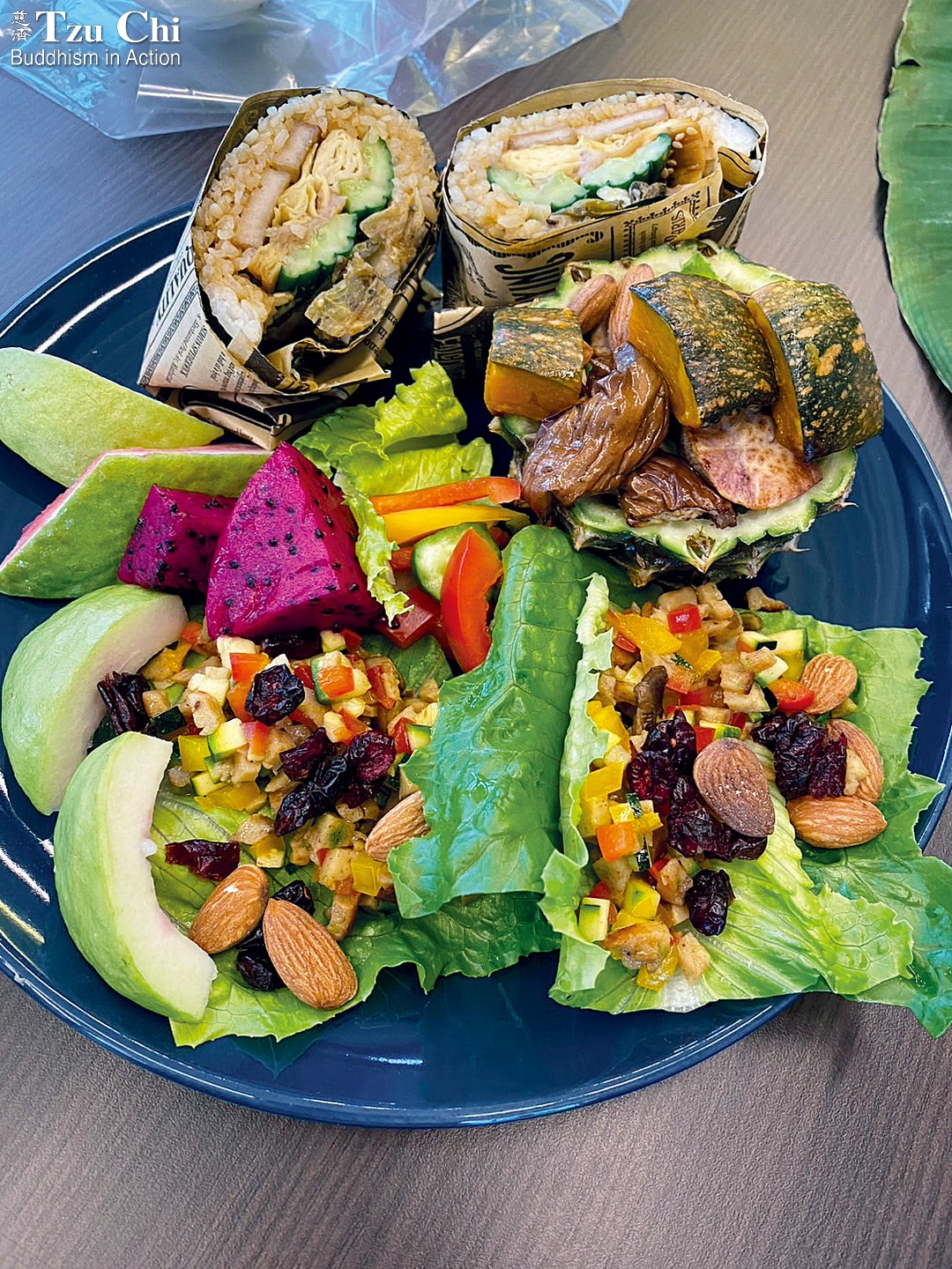 Wu’s creativity is an important part of the menu she offers. She dyes rice burgers pink with dragon fruit and layers them with fresh vegetables to create signature dishes. Her bed-and-breakfast also provides space for a Tzu Chi tutoring program for local children. Having grown accustomed to her vegetarian cooking, the children once complained that a lunchbox containing meat “didn’t taste good” when served one evening because Wu hadn’t had time to cook that day. This goes to show that with care and quality ingredients, vegetarian cuisine can truly win people over.