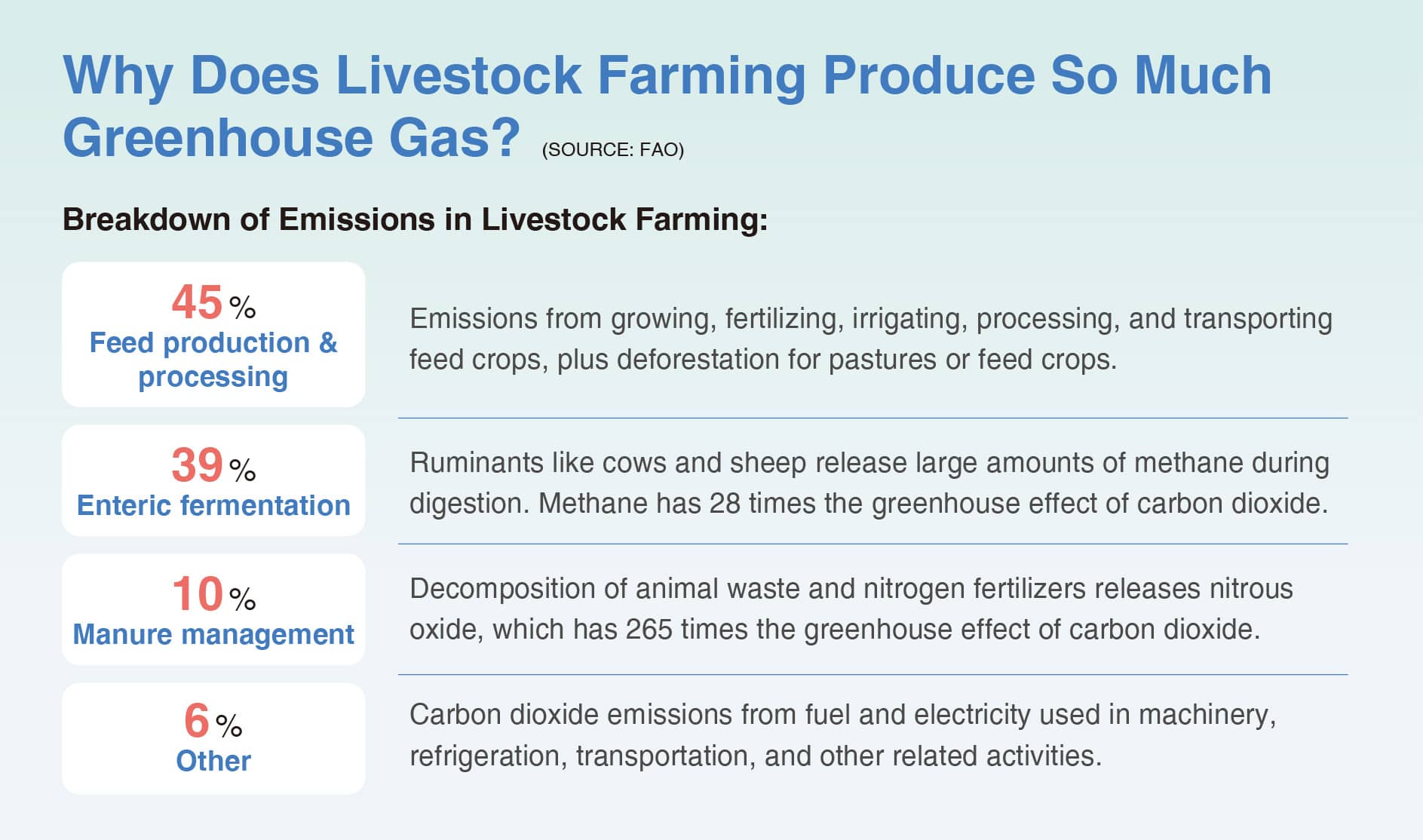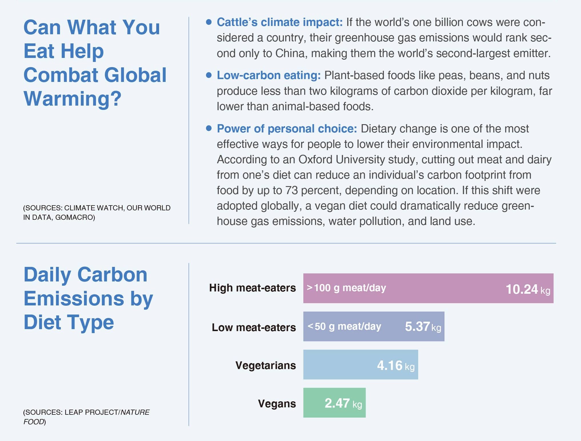 The carbon footprint of livestock farming around the world rivals that of the entire transportation sector. Every meal matters. Your plate can be a force for change.