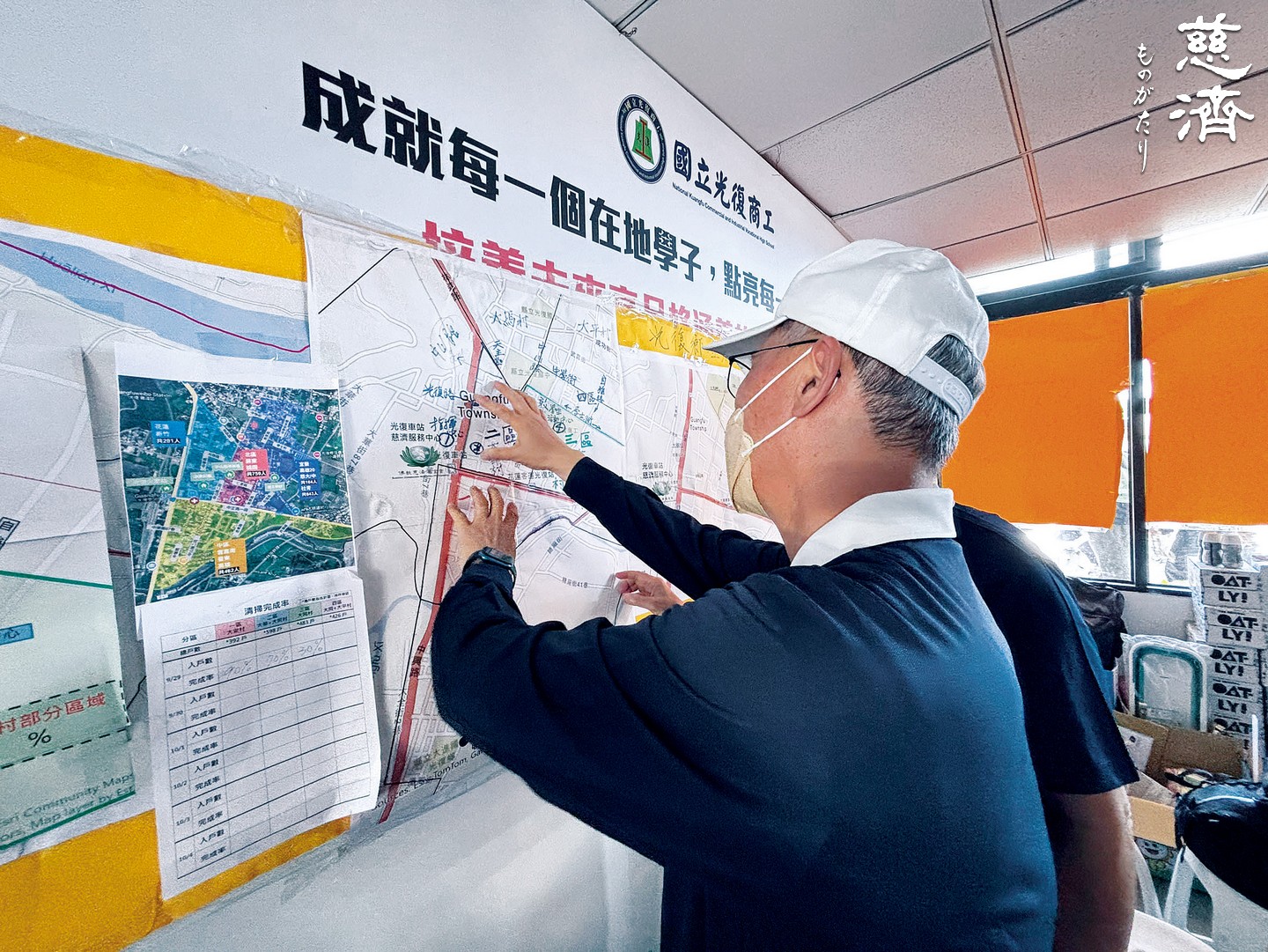 災害発生の翌日、顔博文執行長とそのチームは、数世帯を続けて訪問し、午後には一般の人々に向けて広く人手を募り始めた。まず政府と話し合い、光復駅に近い幾つかの集落を優先的に担当し、「ボランティアが光復駅に到着したら、直ちに支援活動に入れるようにしました」と説明した。最優先の課題は住民が生活を取り戻すための手助けをすることであり、その後すぐに慰問金の配付も行われた。