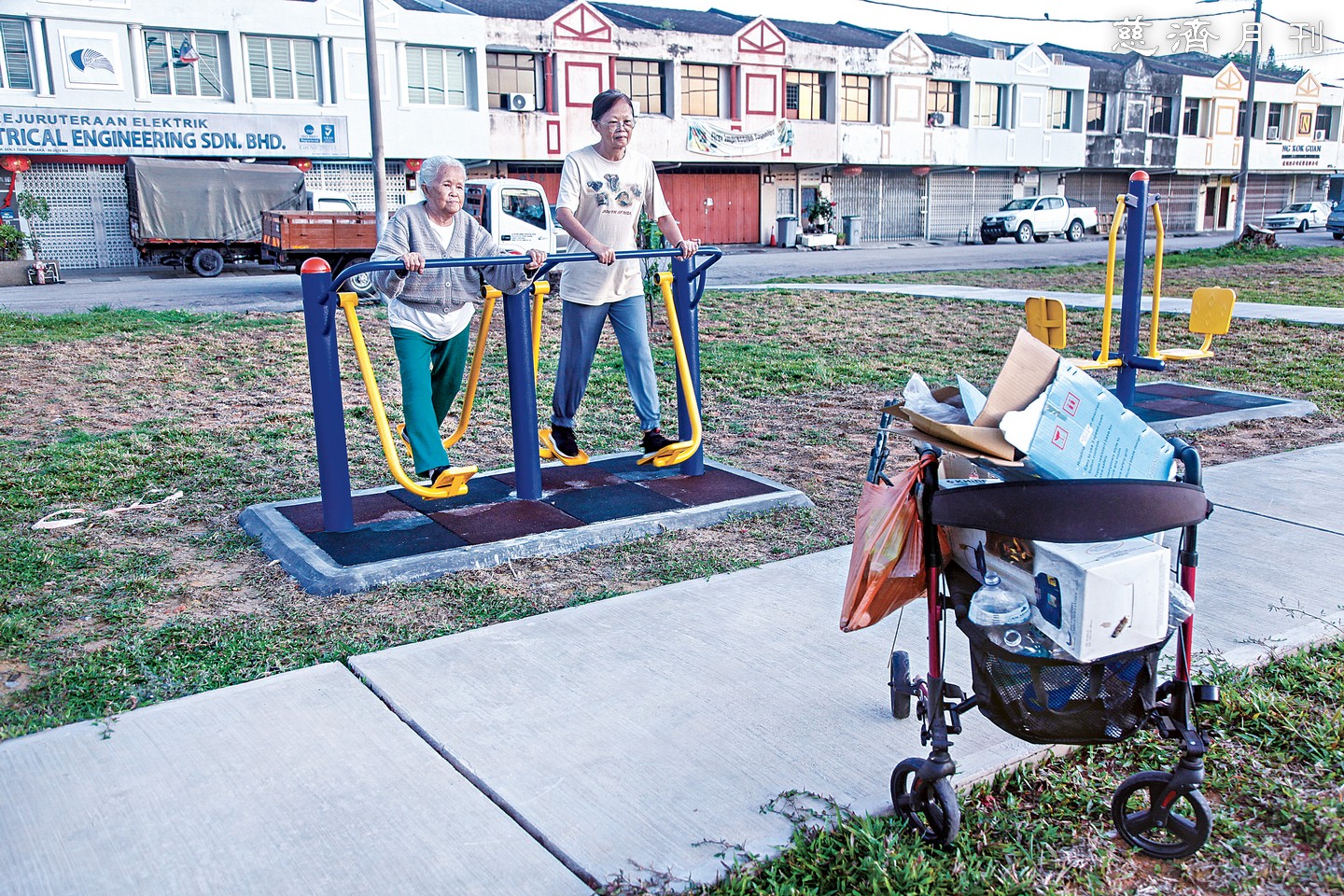 幸好有緣遇見良醫,謝月能再度「腳踏實地」,只是無法再提超過兩公斤的重物。她出門晨運,推著助行車,沿著住宅區往公園走,邊走邊說:「垃圾車前一天才來收垃圾,所以一路上沒有什麼可以撿。」