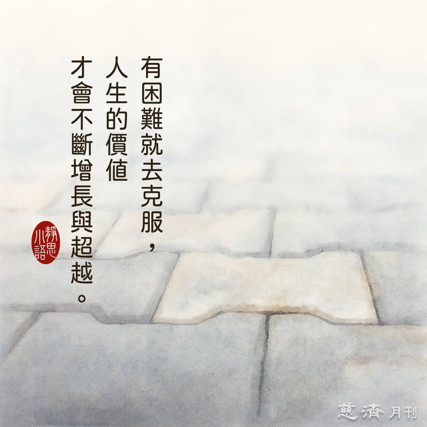 【靜思小語】有困難就去克服,人生的價值才會不斷增長與超越。