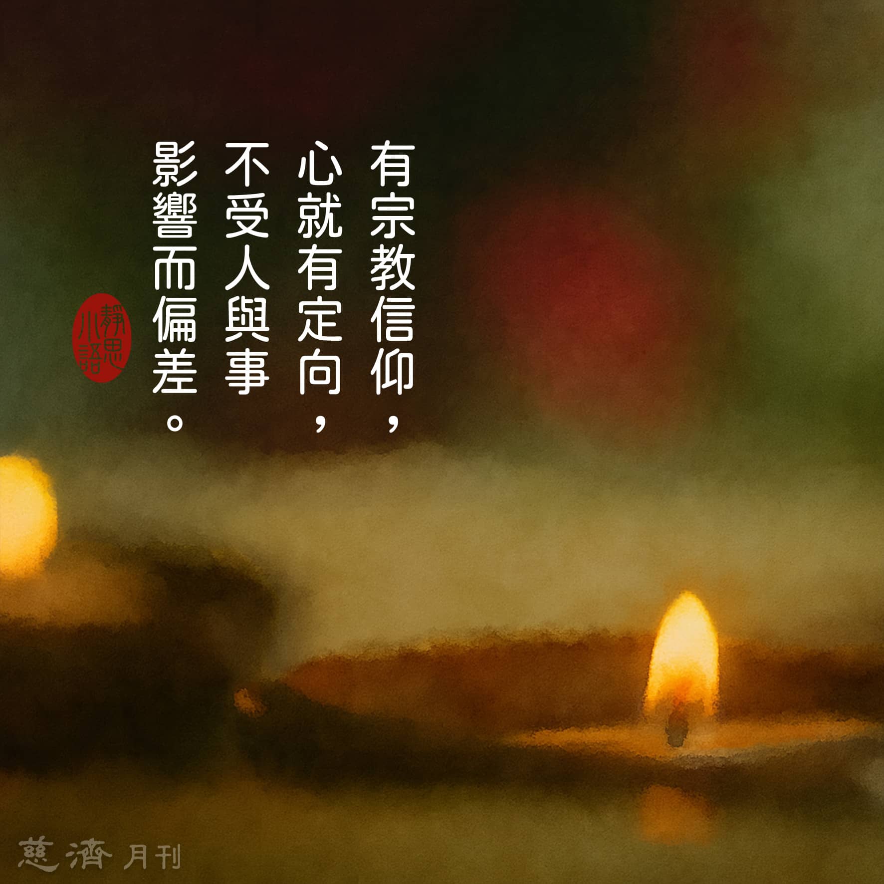 【靜思小語】有宗教信仰,心就有定向,不受人與事影響而偏差。