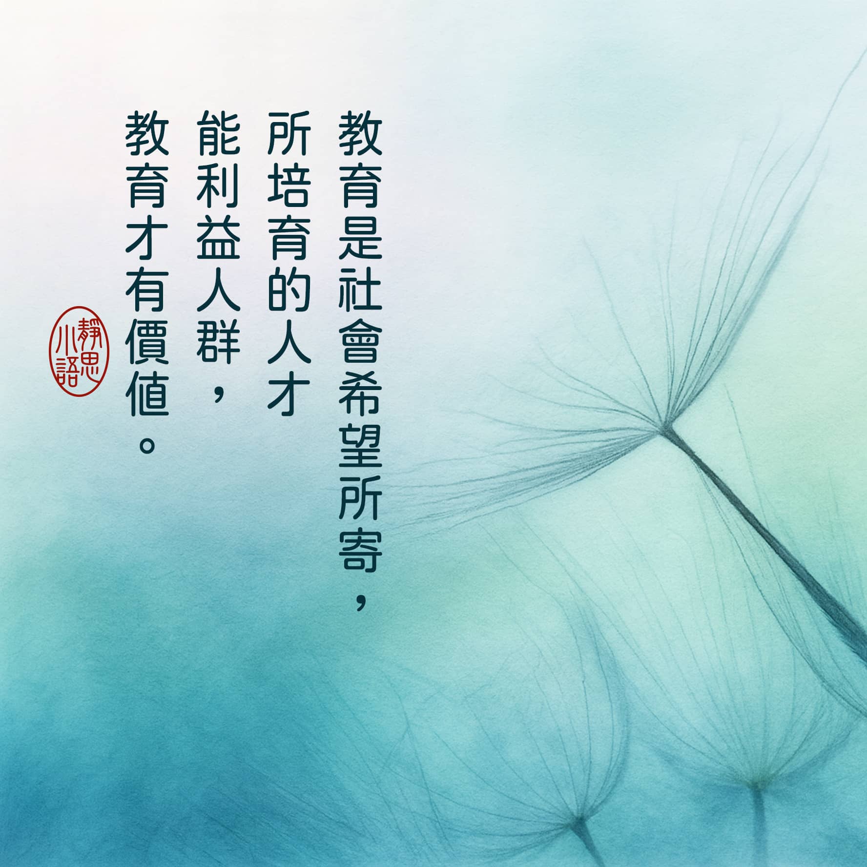 【靜思小語】教育是社會希望所寄,所培育的人才能利益人群,教育才有價值。