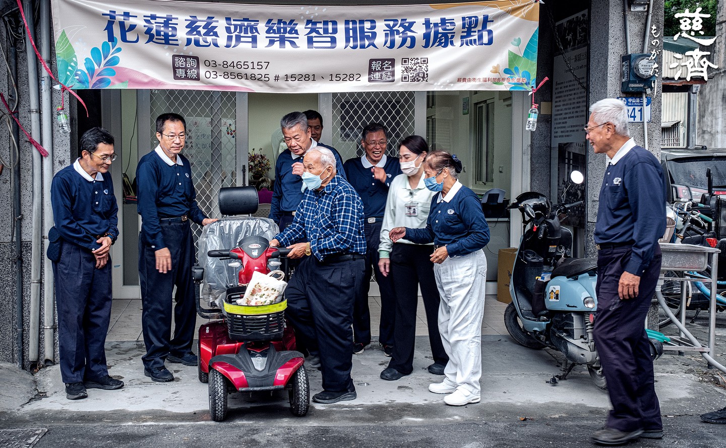 慈済エコ福祉用具チームは11月上旬、光復郷の慈済楽智教室に電動車椅子を届け、高齢者がいつでも借りられるようにした。