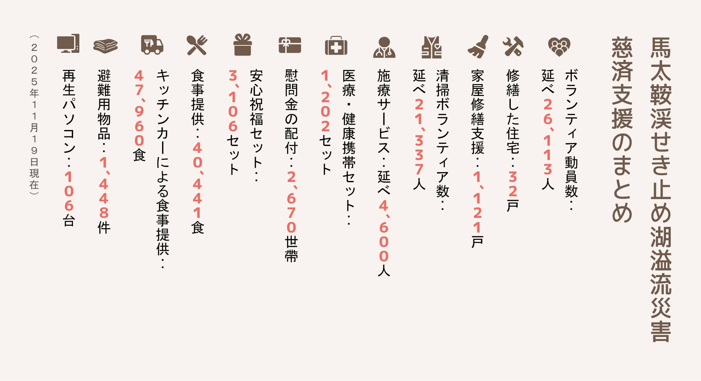 今年(二〇二五年)九月二十三日、台風十八号「ラガサ」の周囲を取り巻く気流の影響により豪雨が発生し、馬太鞍渓のせき止め湖が溢流した。洪水となった流れにより馬太鞍渓橋が破壊され、大量の土砂が光復郷の市街地に流入し、畑を覆い、家具や財産に損害を与え人命を奪った。その後、十月二十五日の光復節まで、「光復」という二文字が頻繁にニュースに登場し、注目を集めるようになった。